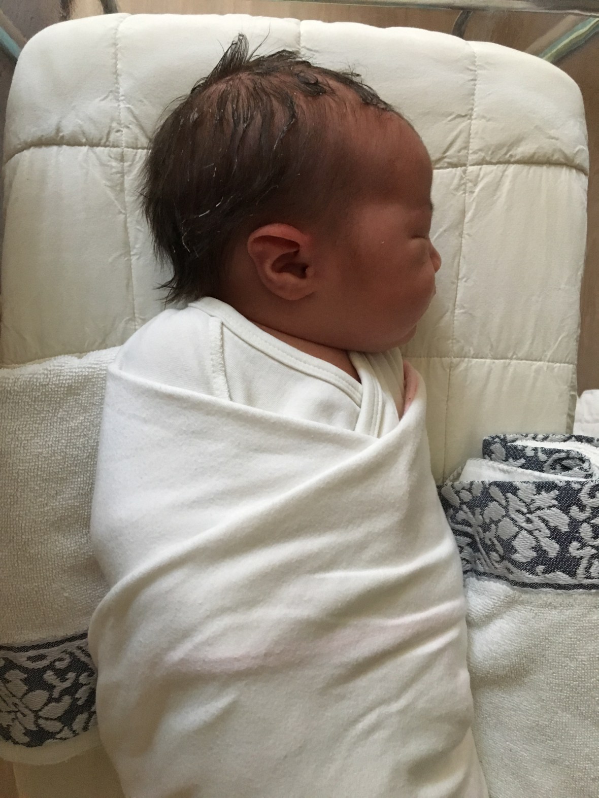 Luna didn’t get a bath until 12 hours after she was born since they don’t like to rush baths here. So her hair was still kinda gross when I got a shot of her cute little baby head.