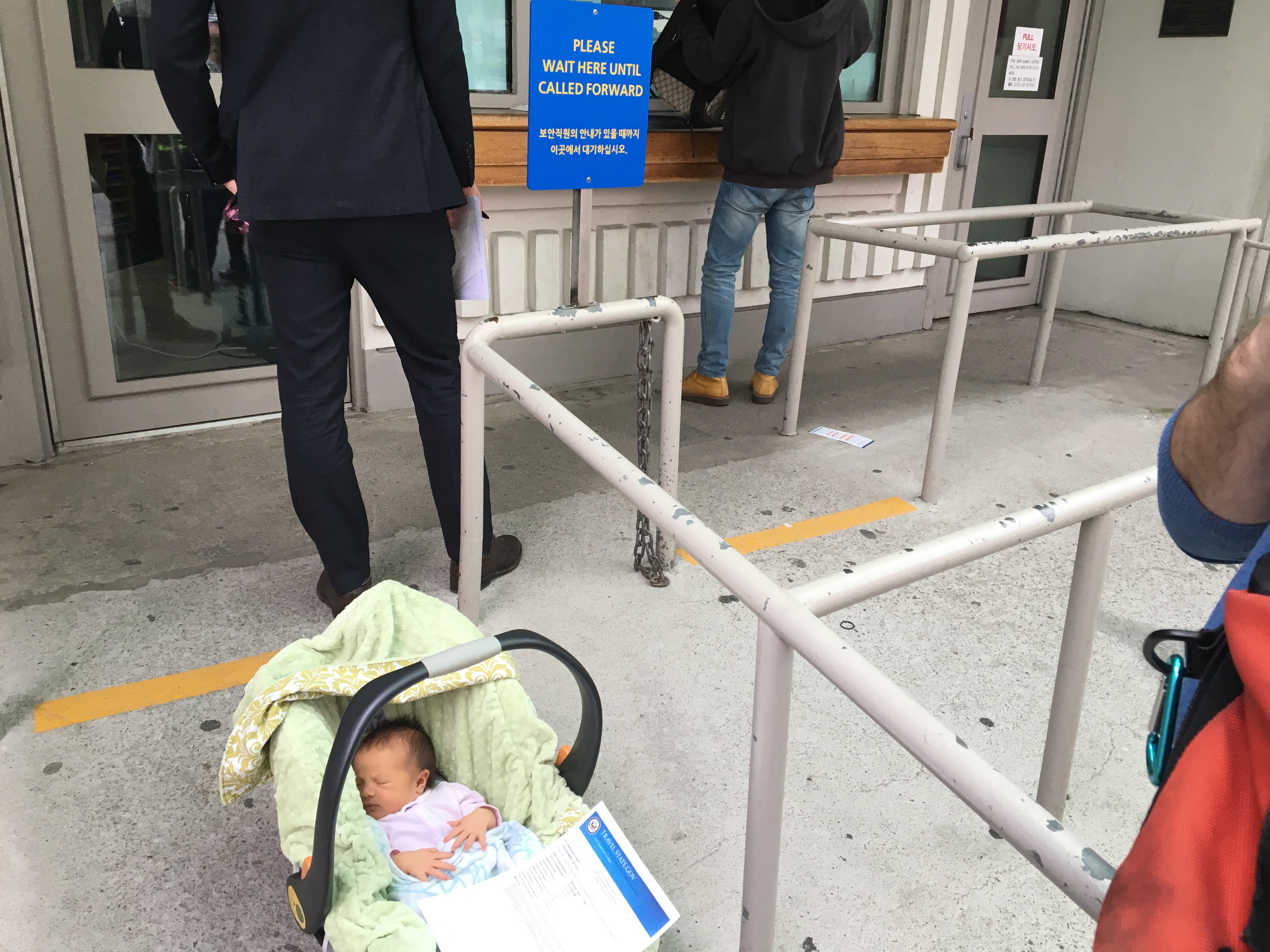 But she needs a passport and an official certificate from the State Department noting that she’s a U.S. citizen born abroad. So this morning Luna had an appointment at the U.S. Embassy in Seoul to apply for her birth certificate, passport and social security card all in one trip. The passport and birth record should come in two weeks, the social security card takes awhile longer.