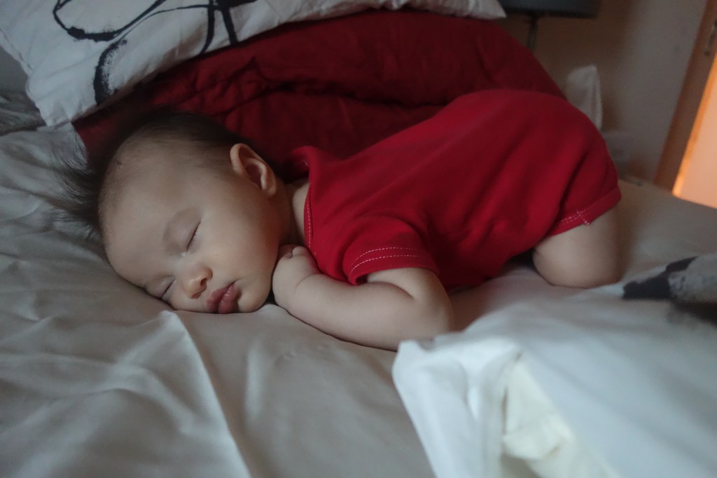 Back is best for babies but we know how much Luna likes sleeping on her tummy so during nap time we have been letting her just zonk out with her bum in the air. She looooooves it. Her two sisters really preferred being on their backs and on their side, so Luna is the first of the girls to do this face down thing so much.