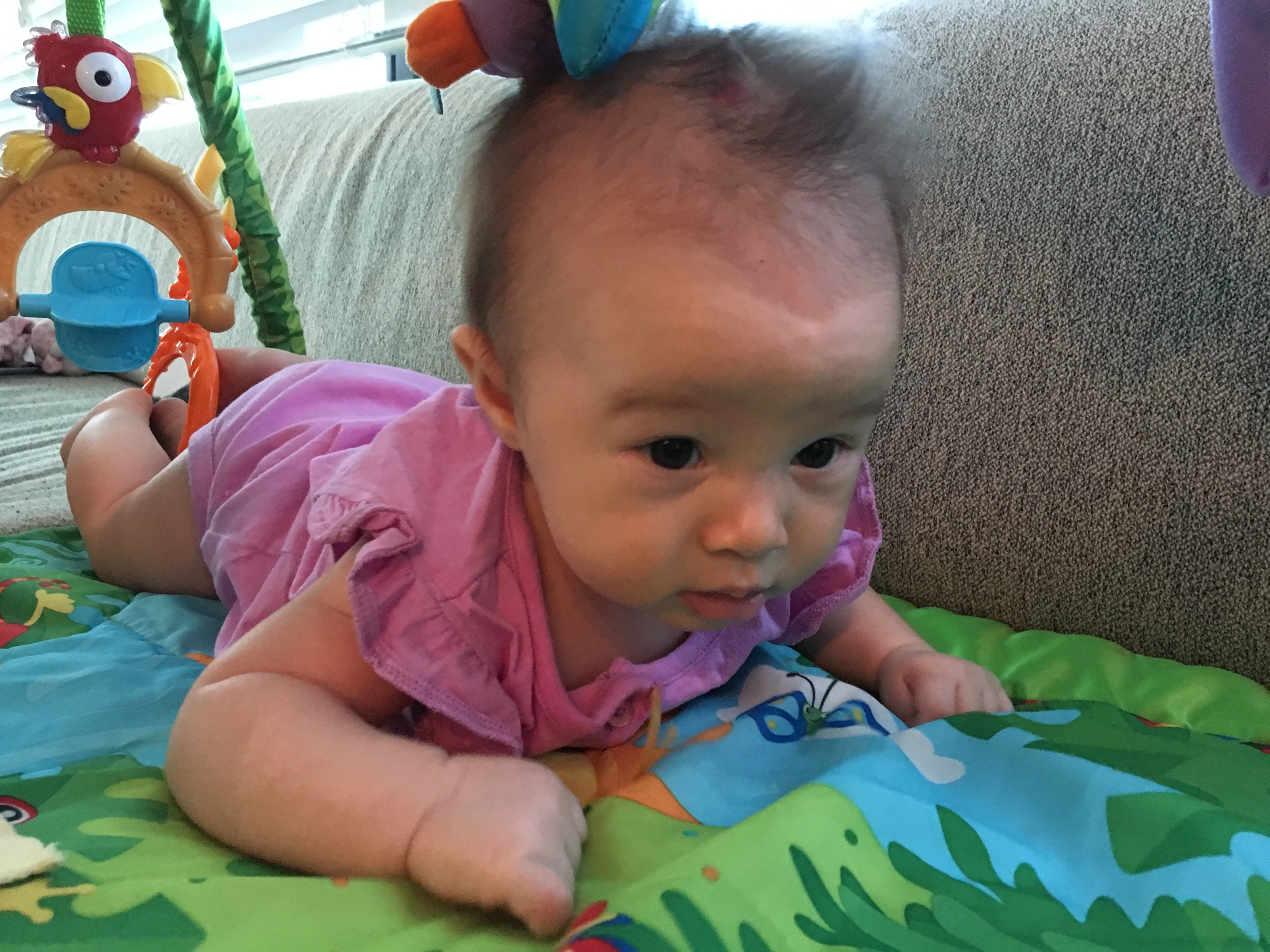 Head Up! Gallery • June 26, 2017June 26, 2017 • Elise img_3091 Tummy time is a workout for lil Luna but she’s getting stronger each day. She can now roll from her back to her side confidently and ALMOST to her belly but not quite! Share this: Click to share on X (Opens in new window) X Click to share on Facebook (Opens in new window) Facebook Like Loading... Related