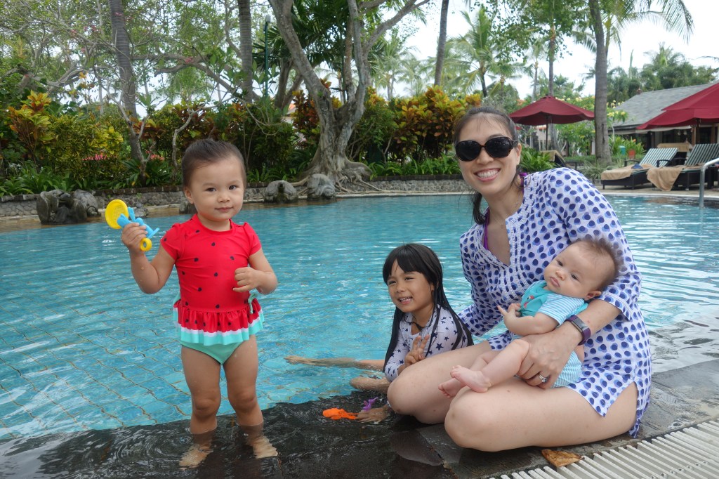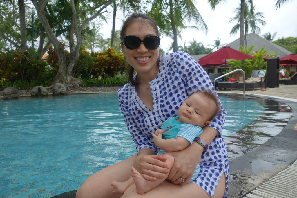 Luna spent her first day in Bali sleeping all day to catch up from an arduous journey to get here. But today after a morning nap she joined her family poolside, which is also right on the beach. Look at this little porker!
