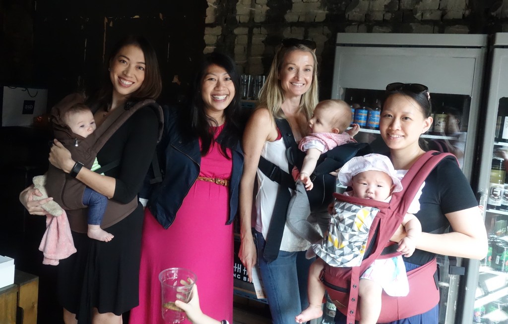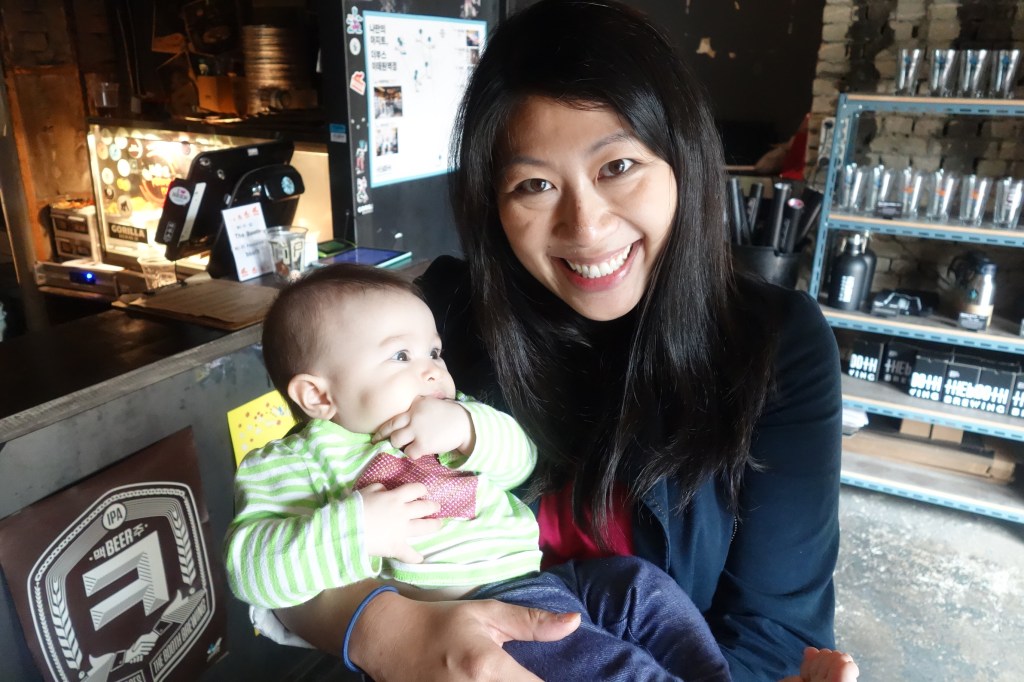Luna was such a trooper! Momma helped co-host a baby shower in the Itaewon district for our friend Auntie Amy today, and Luna came along for the whole thing. First she hung out in her car seat in the corner, then she got bored with that and tried to take a nap (unsuccessfully) in the baby carrier. Ultimately she wound up so tired that she fell asleep — for the night — at 5pm.