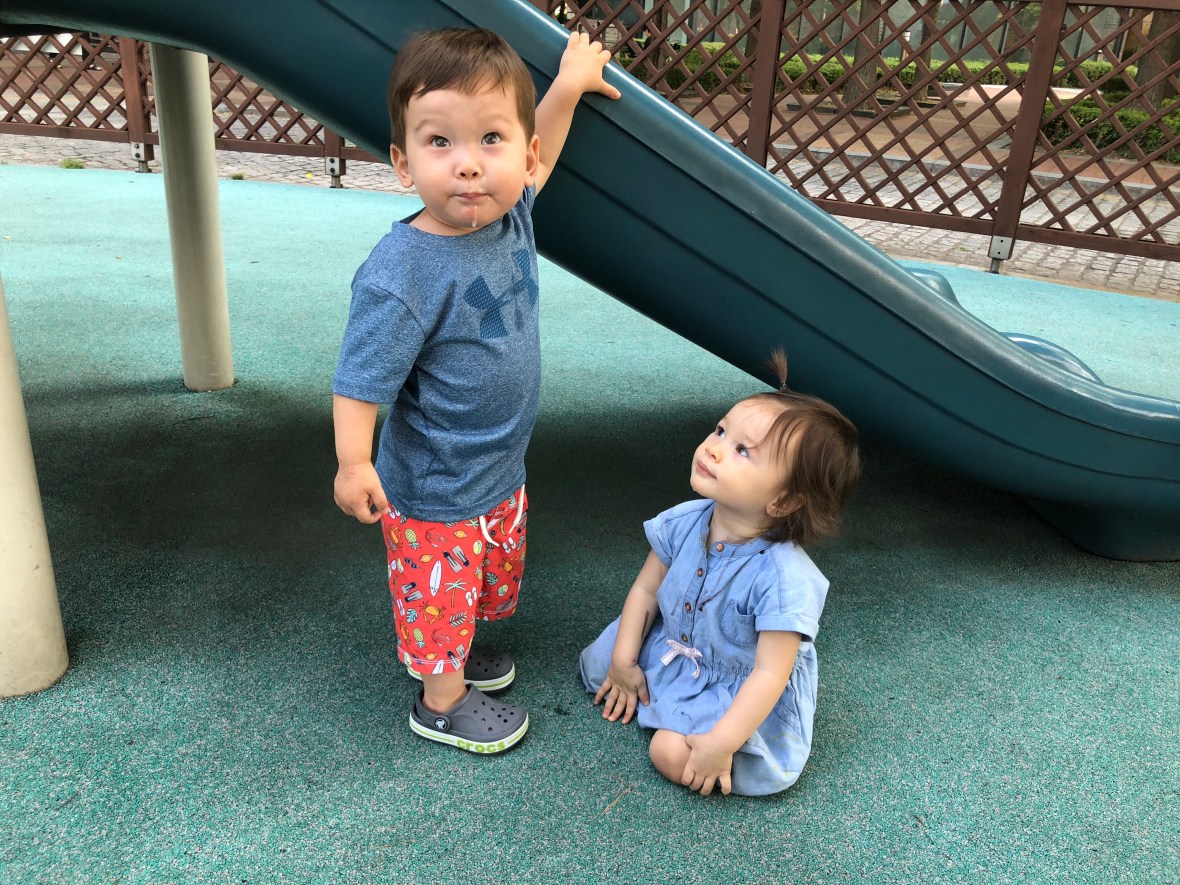 Dad was sick so mom took all three girls out for breakfast, the Lilliput kid cafe and then some outdoor park time after the younger girls took naps. Luna made a new friend on the playground named Max!