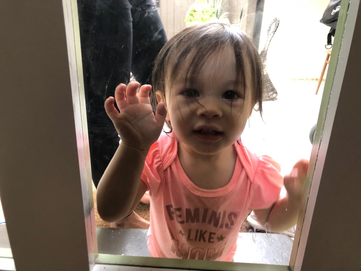Luna is really enjoying pressing her face against glass and being silly while we stay in a temporary home as we await our things from Korea. Moving has been pretty smooth so far!