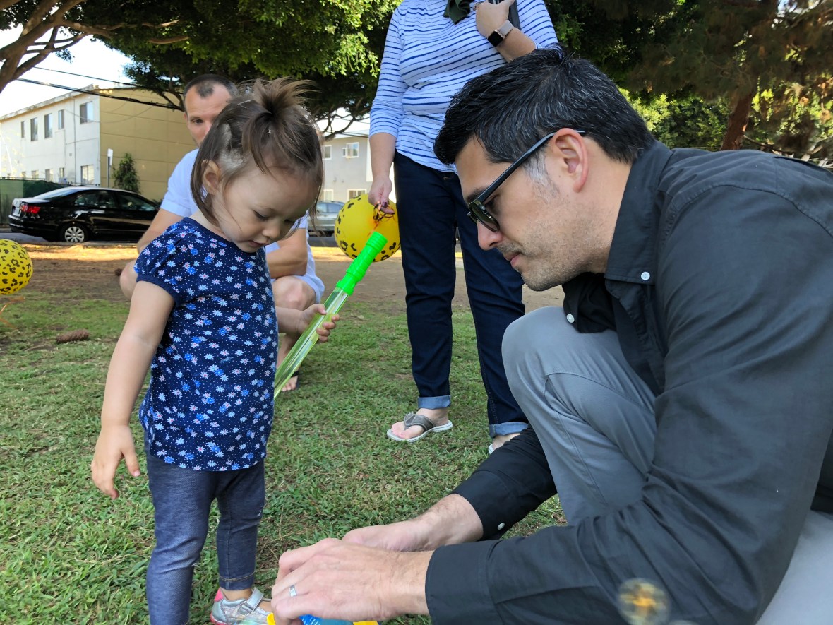 Loading up a bubble gun with Uncle Tim