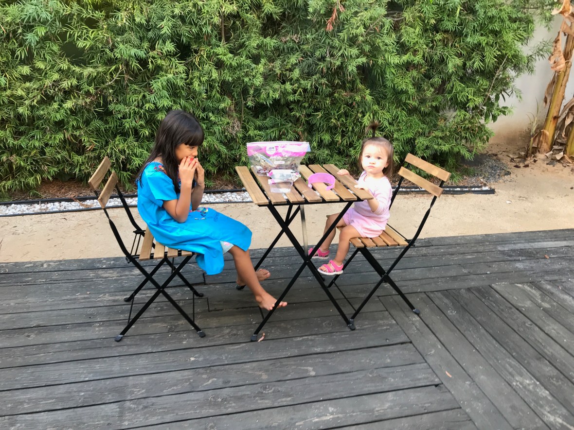 The baby, who calls herself “baby” in the third person, is eighteen months today and a self-assured little lady. She likes to talk a lot, climb up slides backwards and dancing to poppy music.