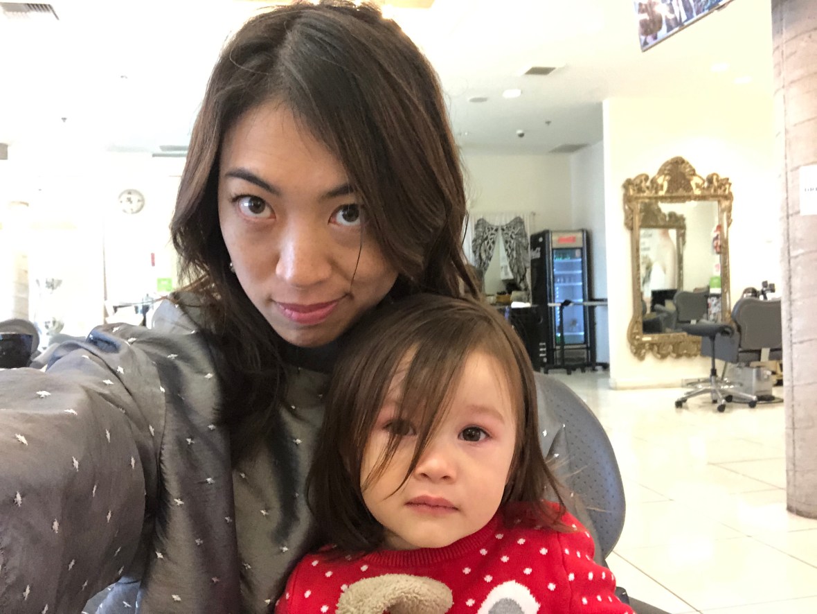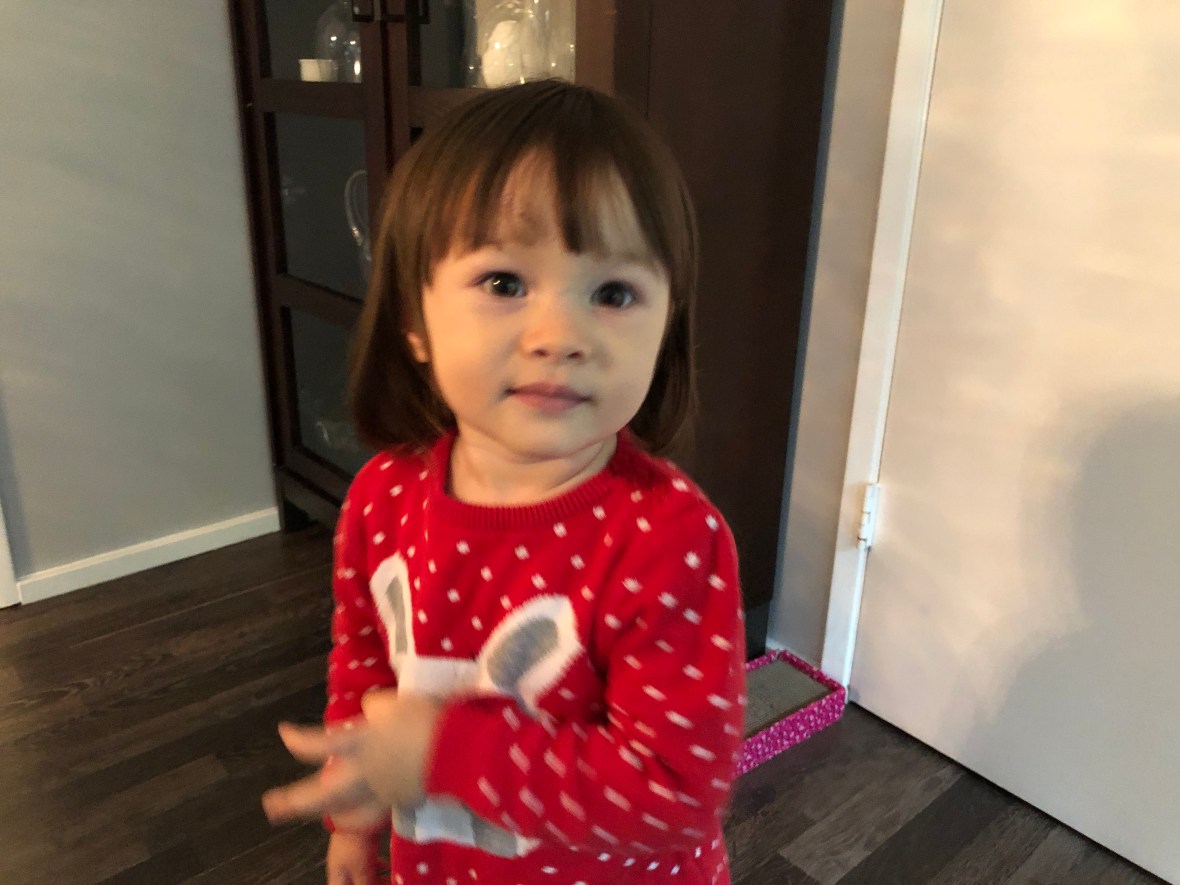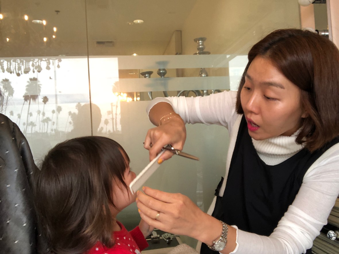 Finally, Luna got bangs! She was very unhappy about this experience and cranky and crying but momma’s hair person, Kate, managed to do a swell and fast job anyway. Luna now looks a lot like her big sister Eva!