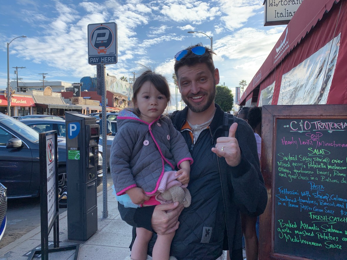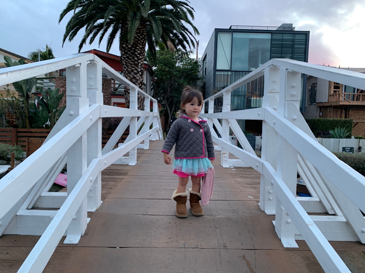 What a nonstop day! We hit the Santa Monica Farmers Market first thing, where Luna wanted endless strawberry samples and ate all the scrambled eggs out of mom’s breakfast burrito, then Tongva Park where we ran into old friends. After nap we hit the Venice Canals, where the Vechey family (our pals) are staying and we all strolled along the Canals to dinner, where Luna killed all the garlic knots.