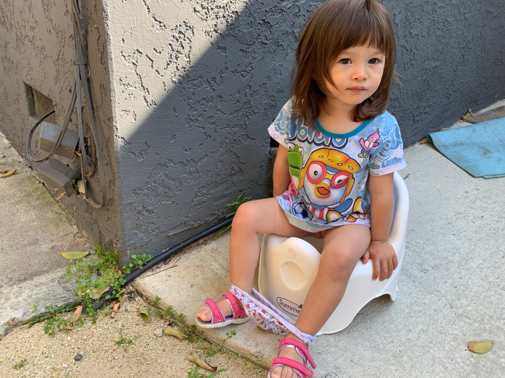 Luna is about to turn two and she has for several months been able to tell between wet and dry, and knows when she is pooping and communicates it, so we put her through the potty training boot camp this weekend. It requires a regimented time on/time off the potty, until she learns how to go sit on it on her own before she pees. She’s about half and half on accidents/actually peeing in the potty, so we’re getting there. She’s been a great sport about it all.