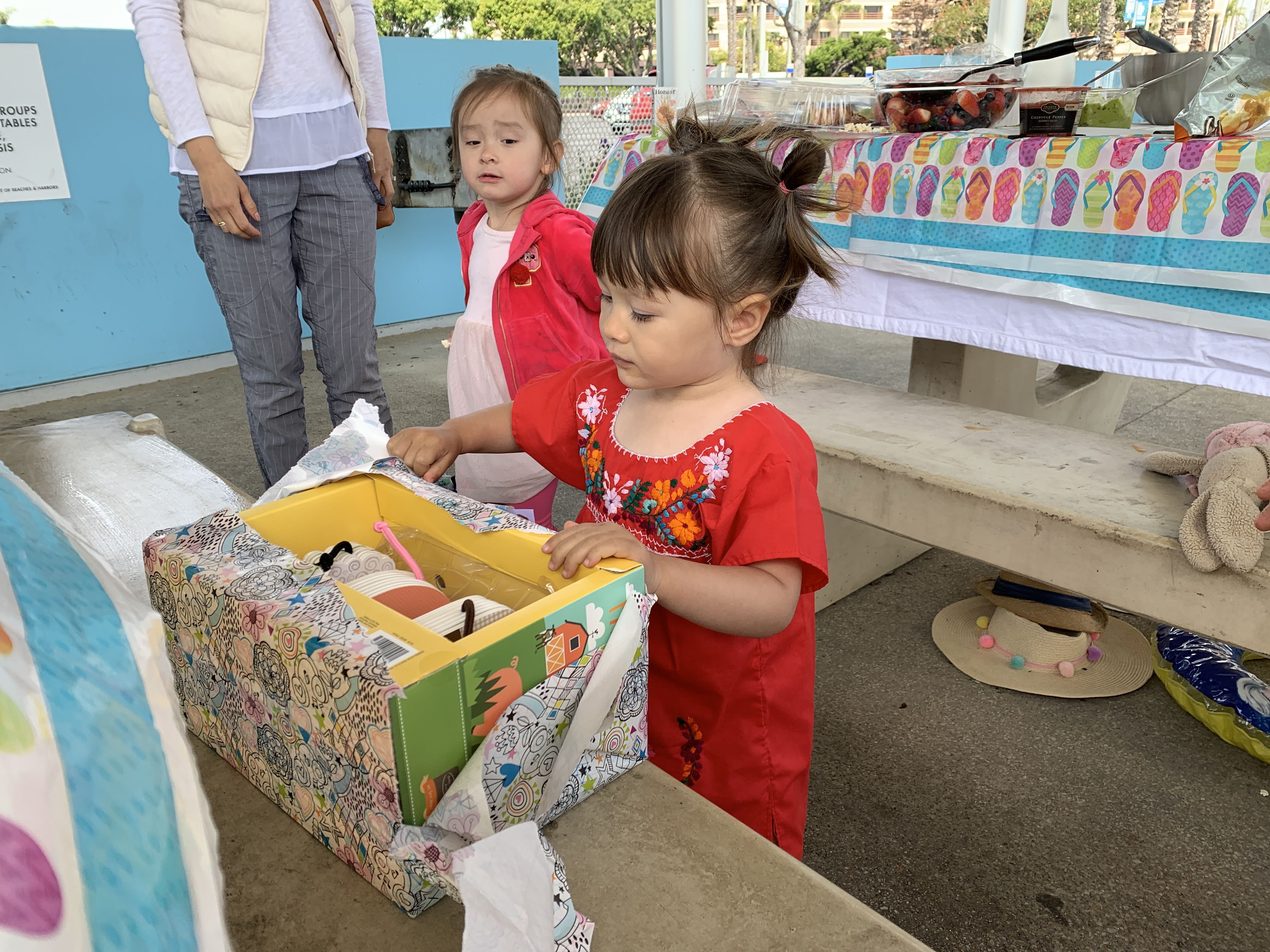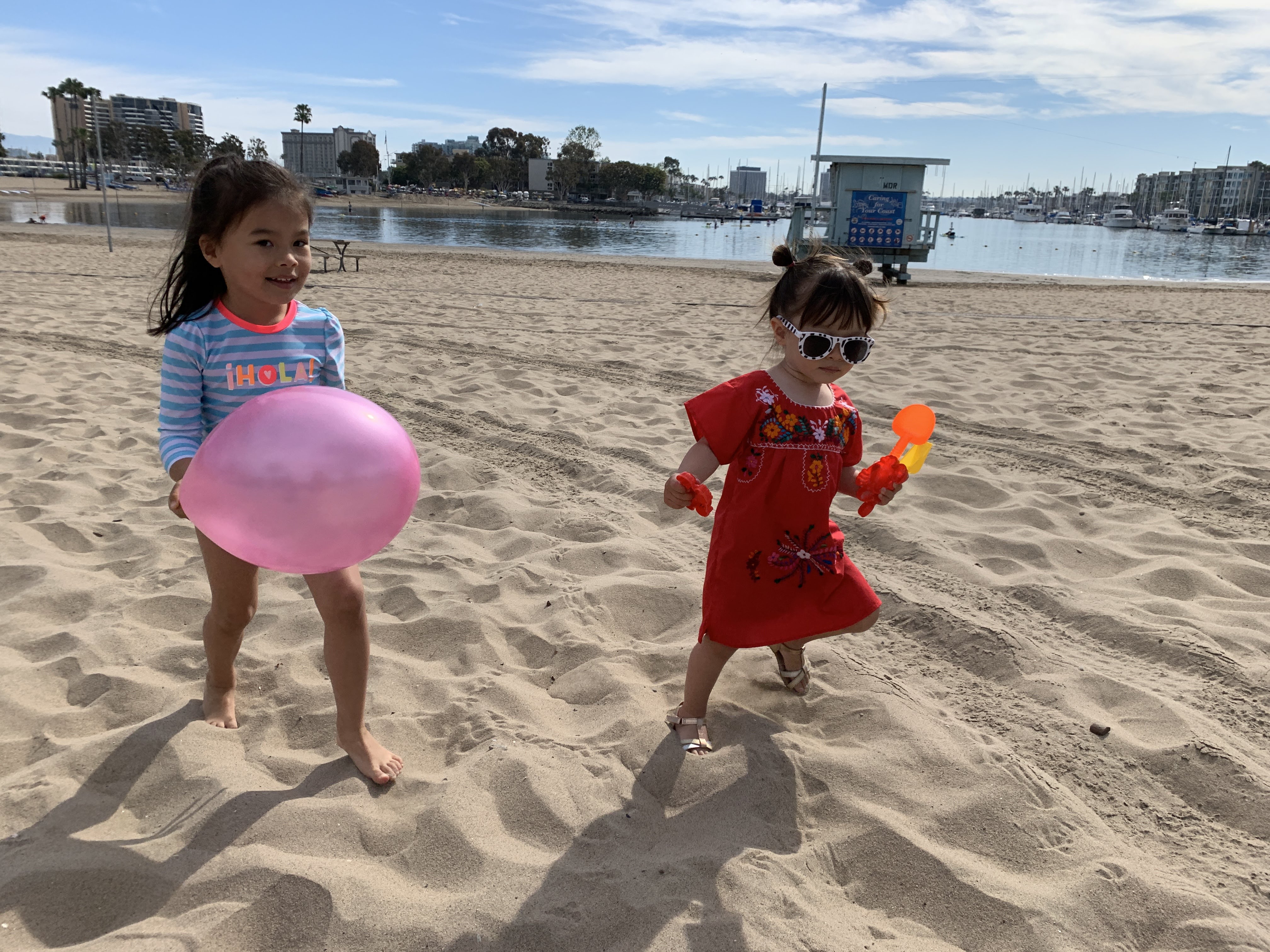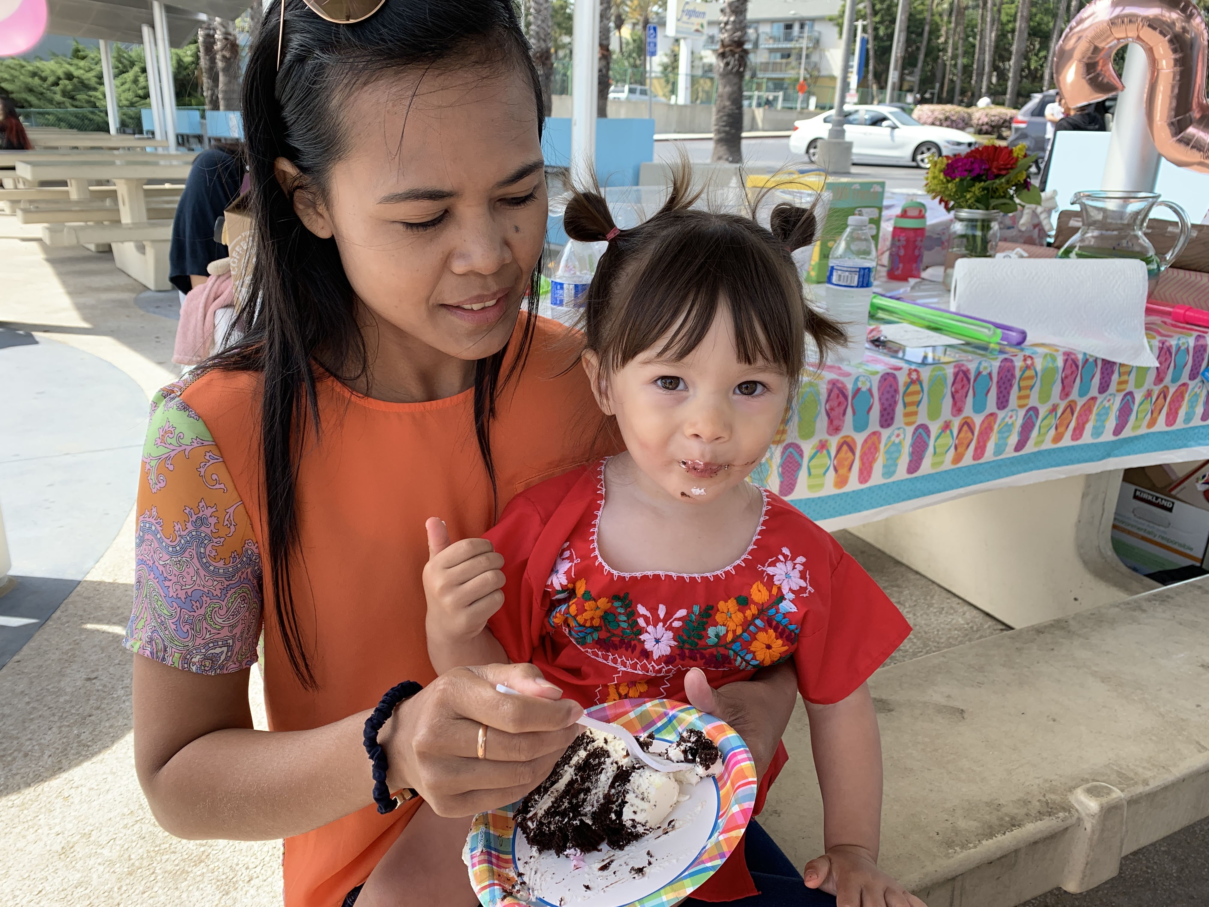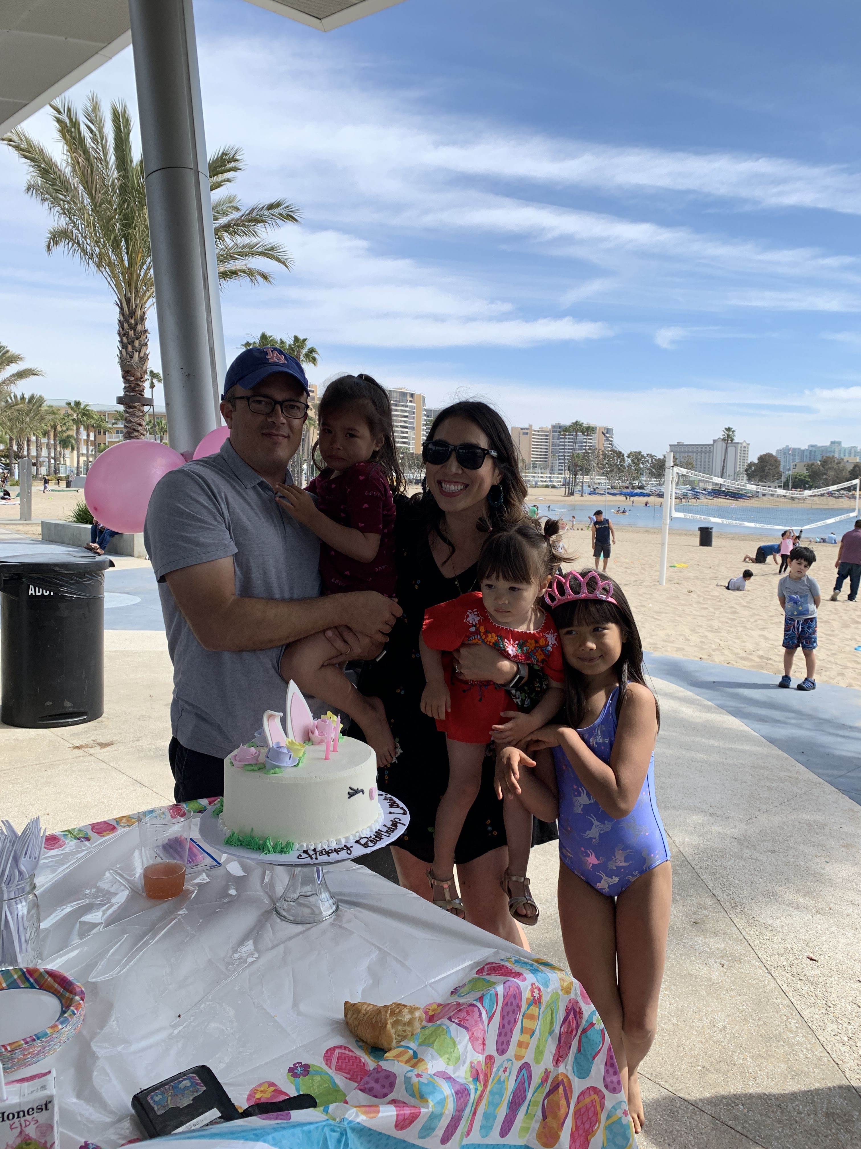 Luna turned TWO on Sunday, and celebrated with her favorite activity — playing in the sand. We hosted a birthday brunch at Mother’s Beach in Marina del Rey with so many kid and grownup friends and delicious cake from Angel Maid Bakery, which is across the street from our house. Luna knew it was her birthday and on the way to the party she kept saying, “Baby happy to you, baby happy to you!” (She calls herself “Baby”).