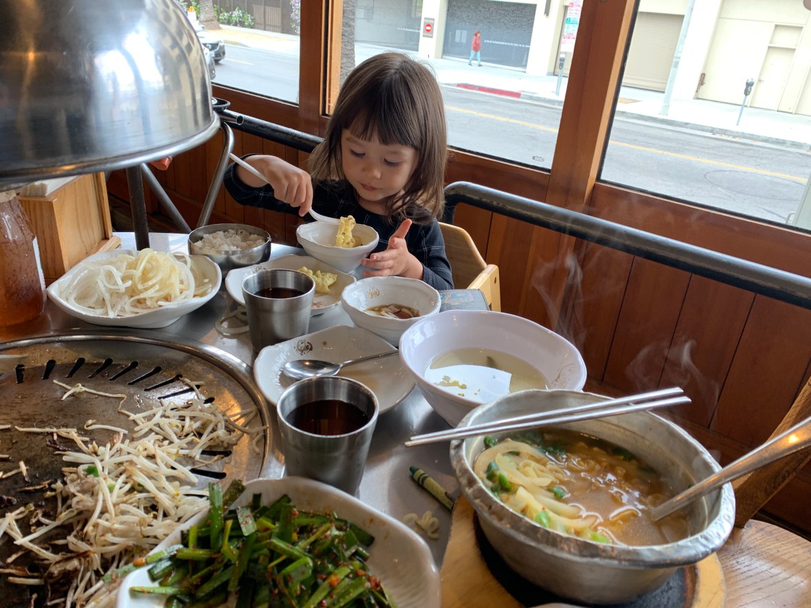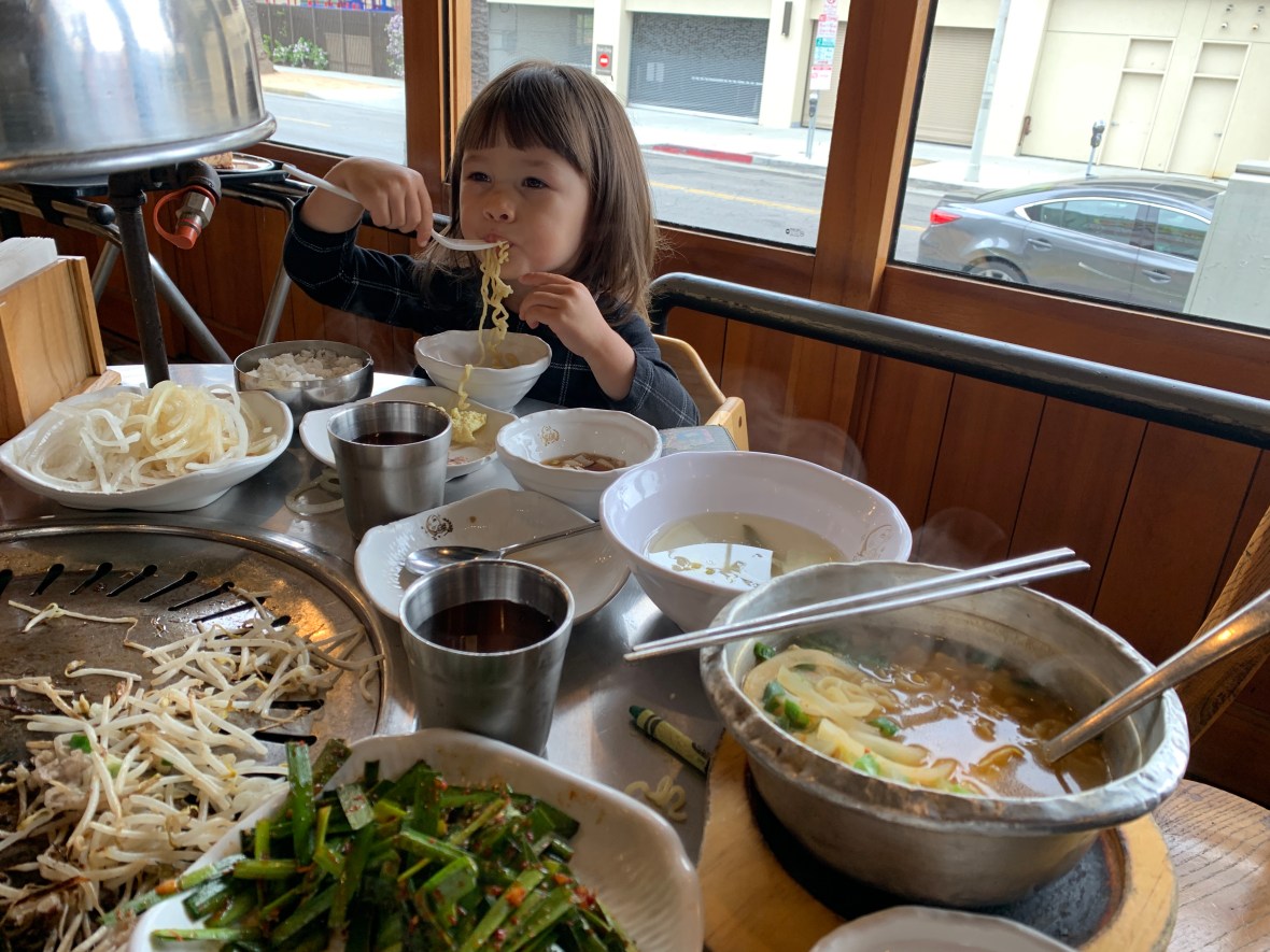 Mom was feeling a little homesick for Korea so we spent Saturday in LA’s koreatown. Luna loves skirt steak beef bbq and onion salad, but enjoyed the ramen noodles the most.