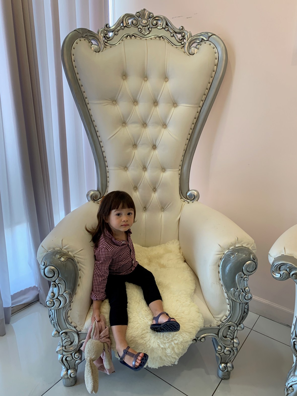 Throne Image • May 27, 2019 • Elise The salon is so fancy! Here’s Luna as she waited to get her bangs trimmed yesterday. Share this: Click to share on X (Opens in new window) X Click to share on Facebook (Opens in new window) Facebook Like Loading... Related