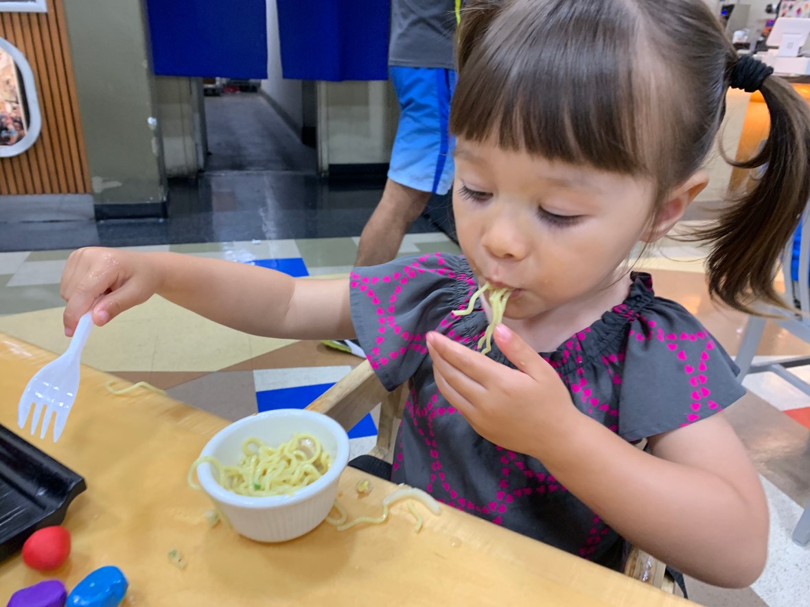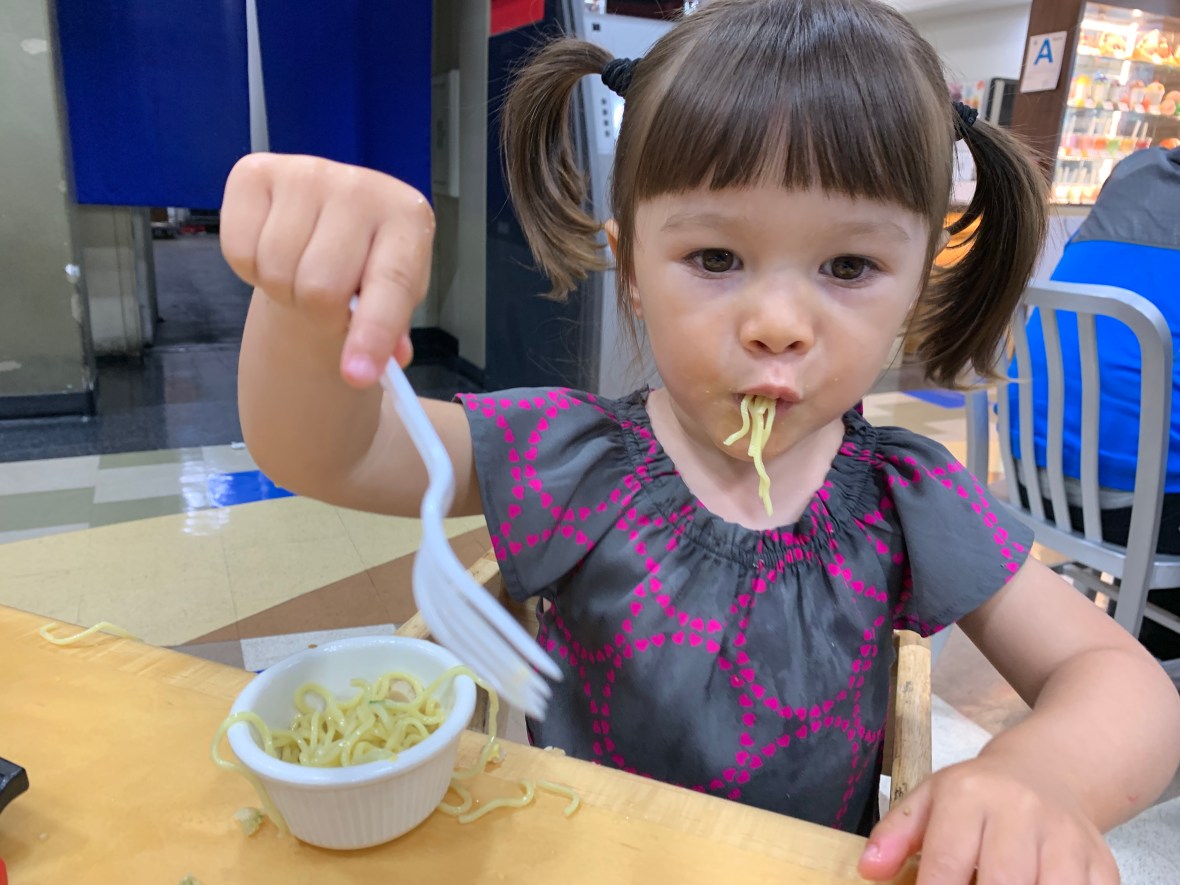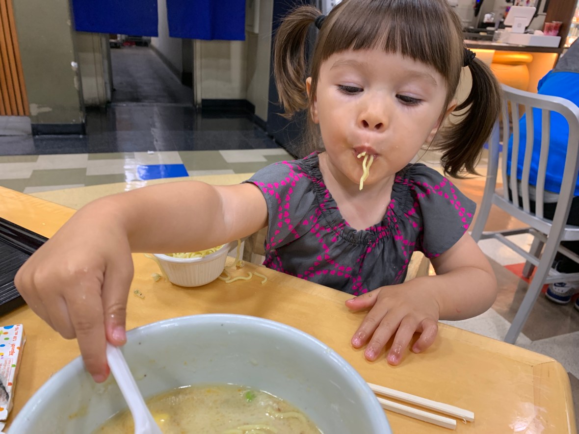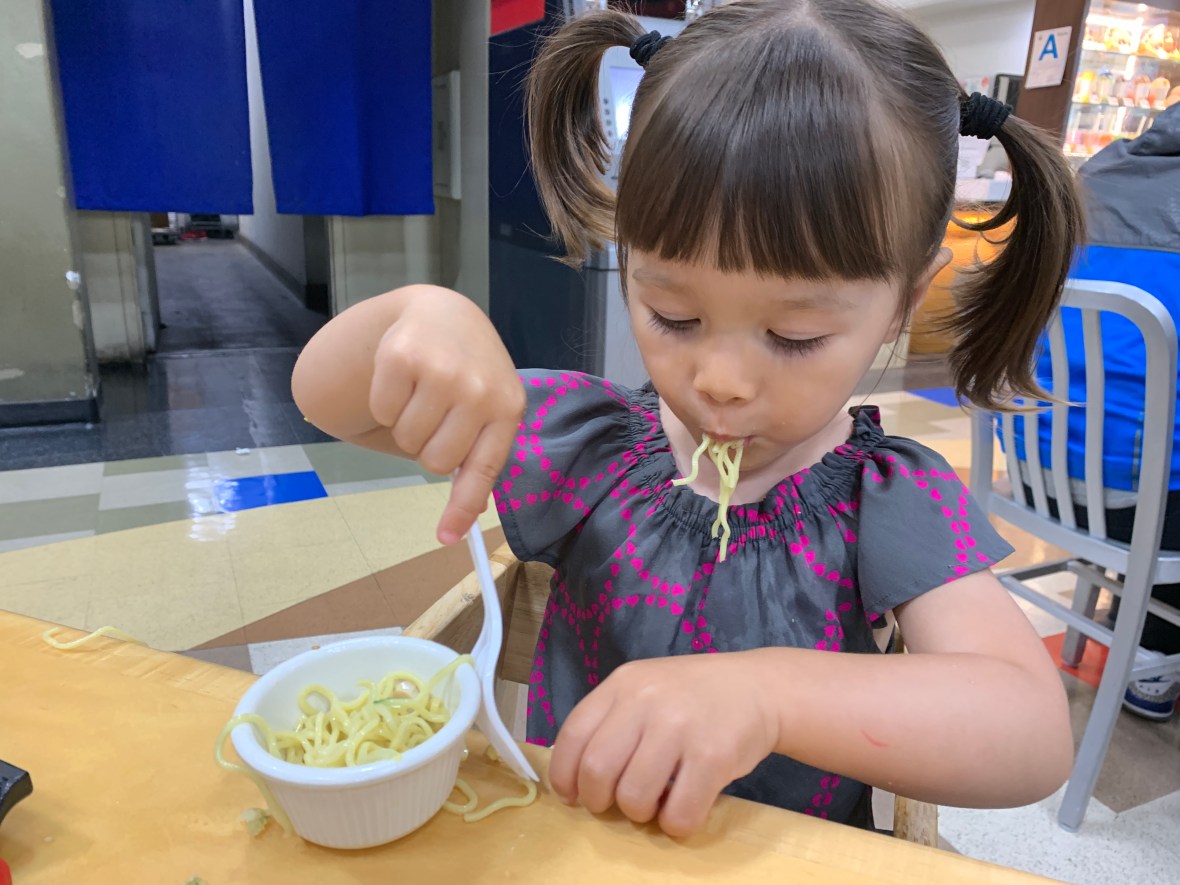 Luna is a really independent eater and knows what she likes and dislikes. At the Japanese food court, once she decided she preferred ramen noodles over udon noodles, she went to town.