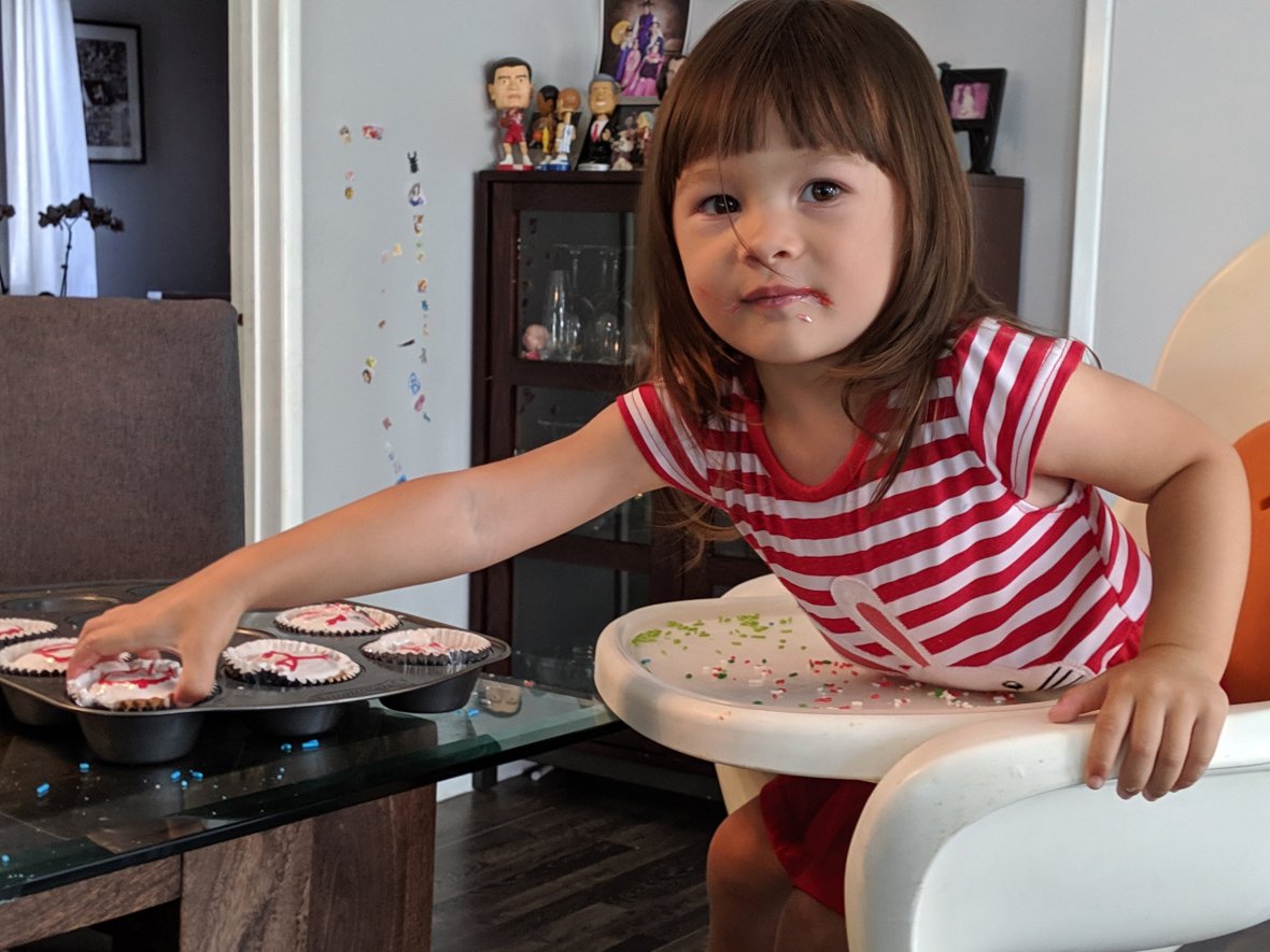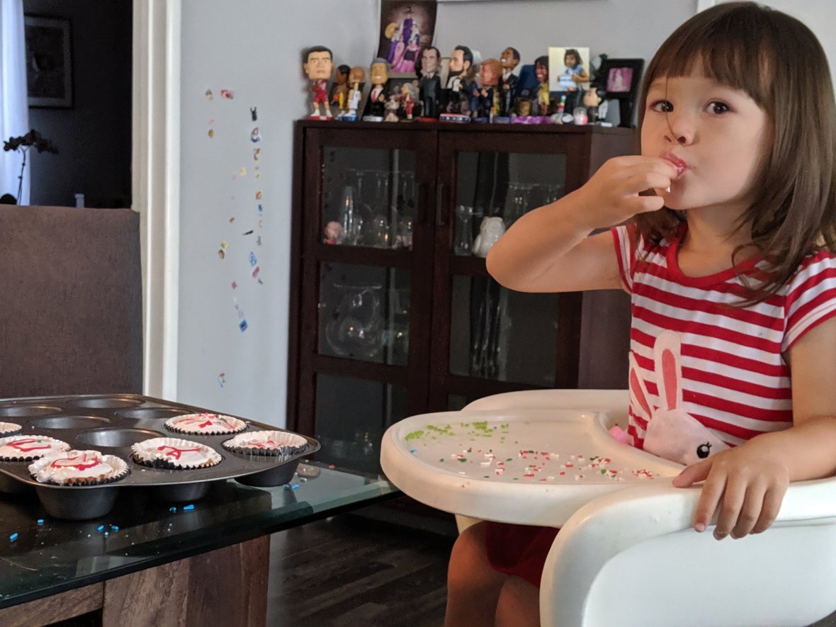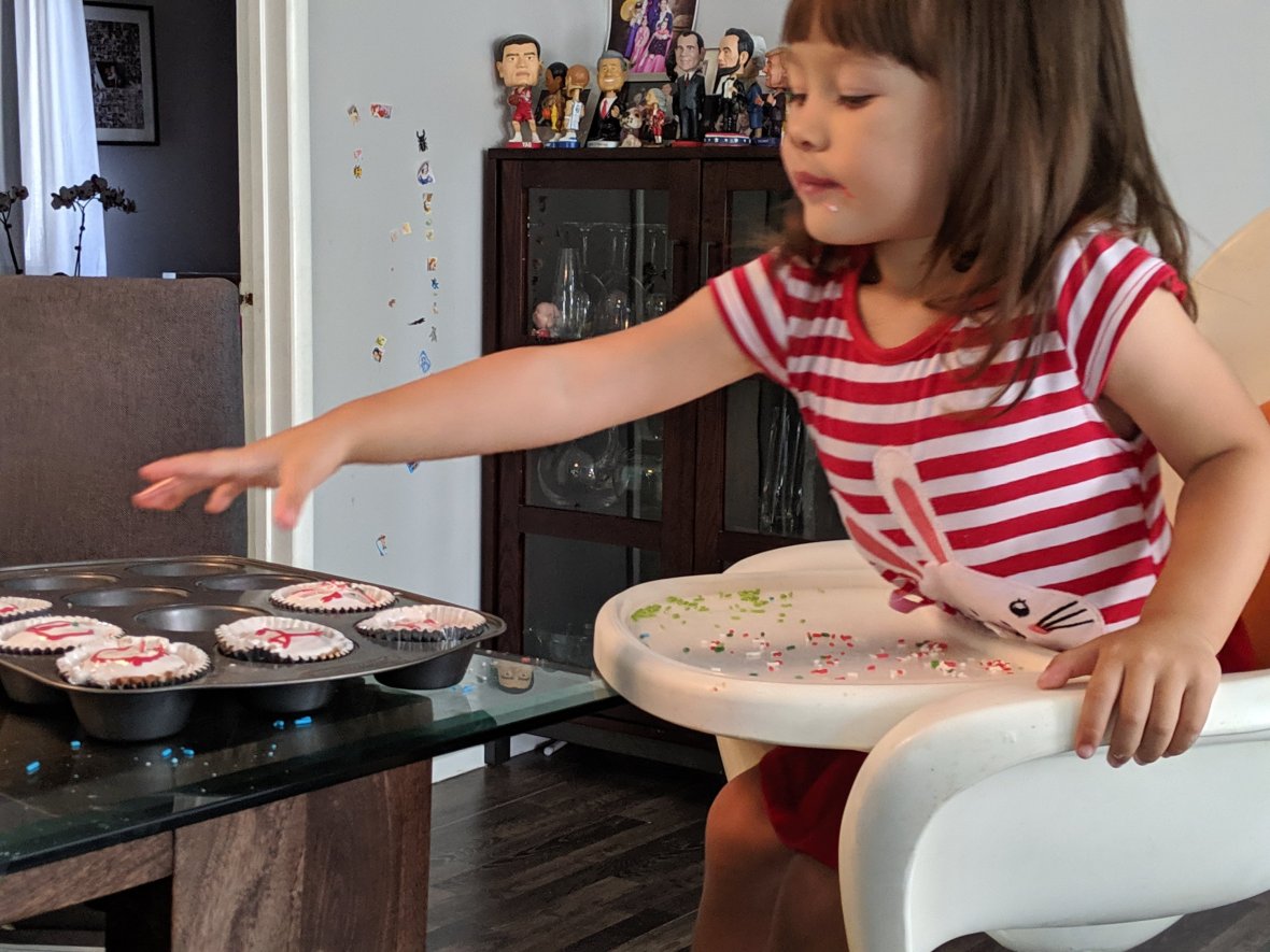 Today the family made cupcakes, and Luna got the high honor of adding the sprinkles.