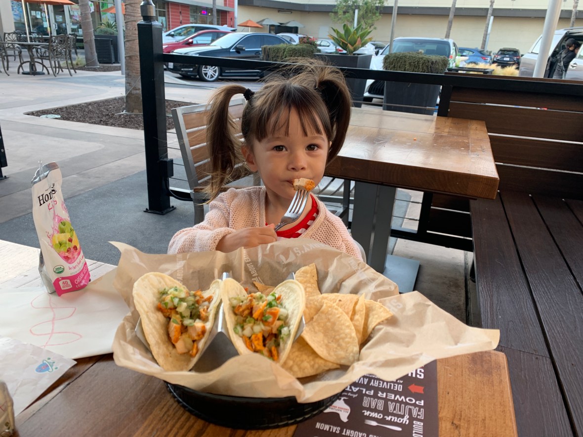 Luna joined the fam for a fundraiser for Eva’s school and discovered she loves chicken tacos. This week she also discovered jalapeño Cheetos, which is a surprising fave.