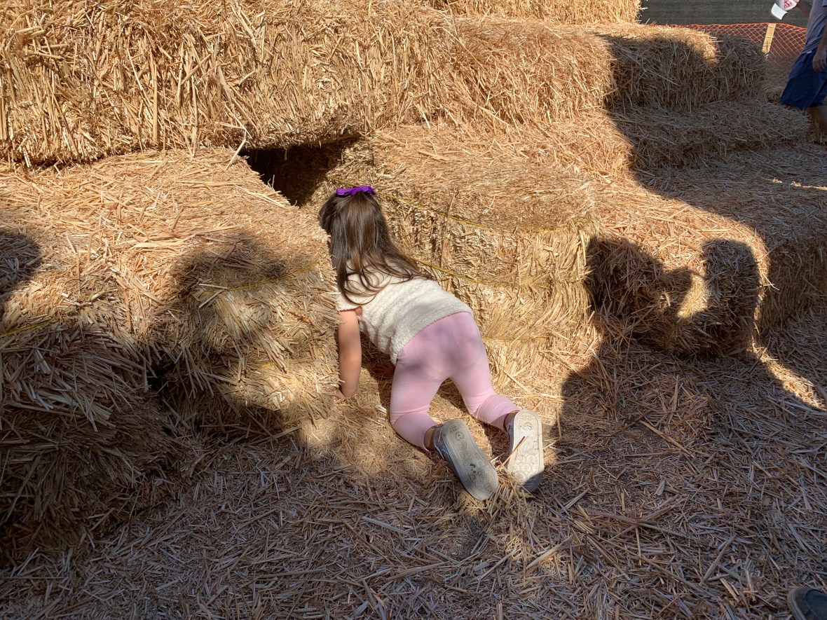 Luna looooves pumpkins and Halloween and has ever since she could walk. She especially loved the bouncy houses, hay maze and getting pulled around in a wagon at the Mr Bones pumpkin patch we visited on Sunday.