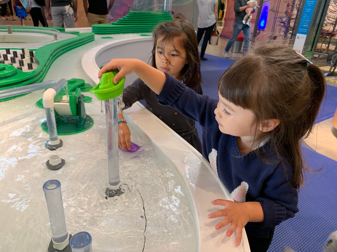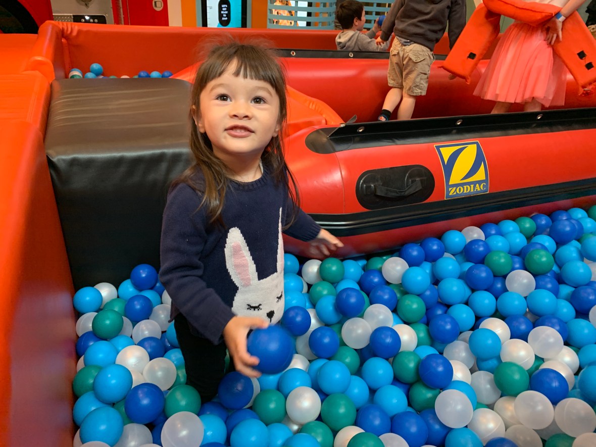 In Santa Monica, with sister Isa. Then we got lunch at the food court at Santa Monica Place and played more, at least until Isa has a temper tantrum and Luna kept it together while we rushed home.
