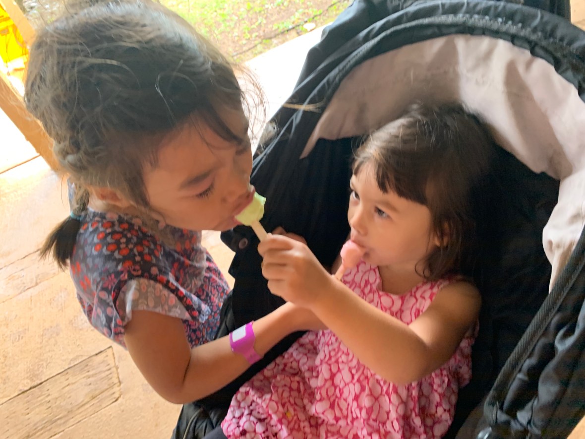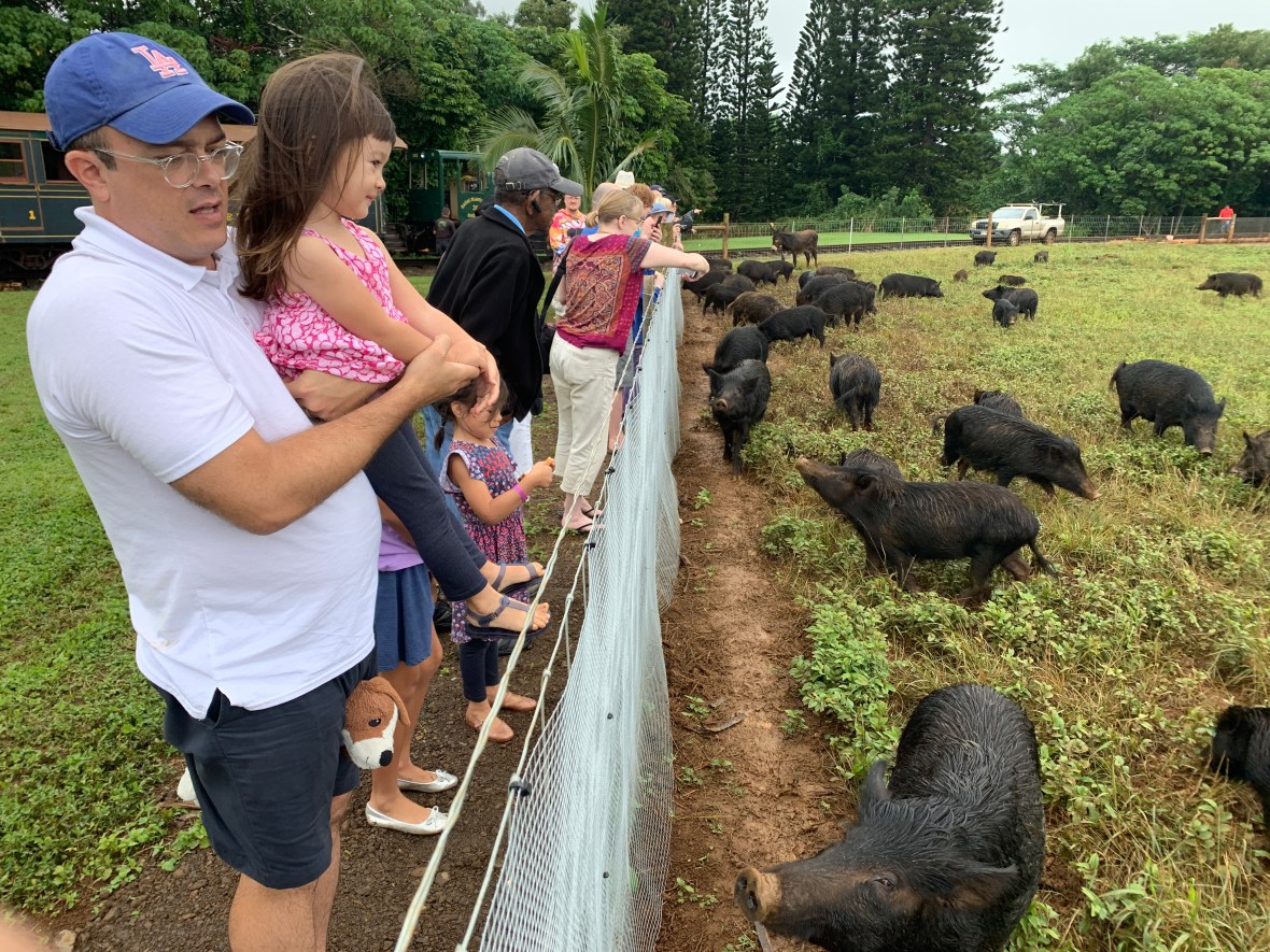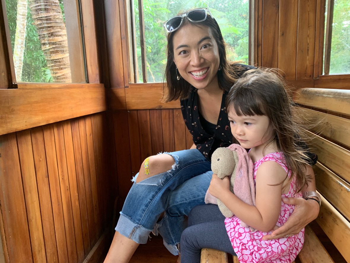 Luna loves transportation so getting to take a train ride tour through a plantation and feed pigs and chicken was a real treat. The rain made things a little dodgy but it cleared long enough to do the feeding.