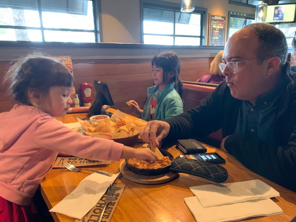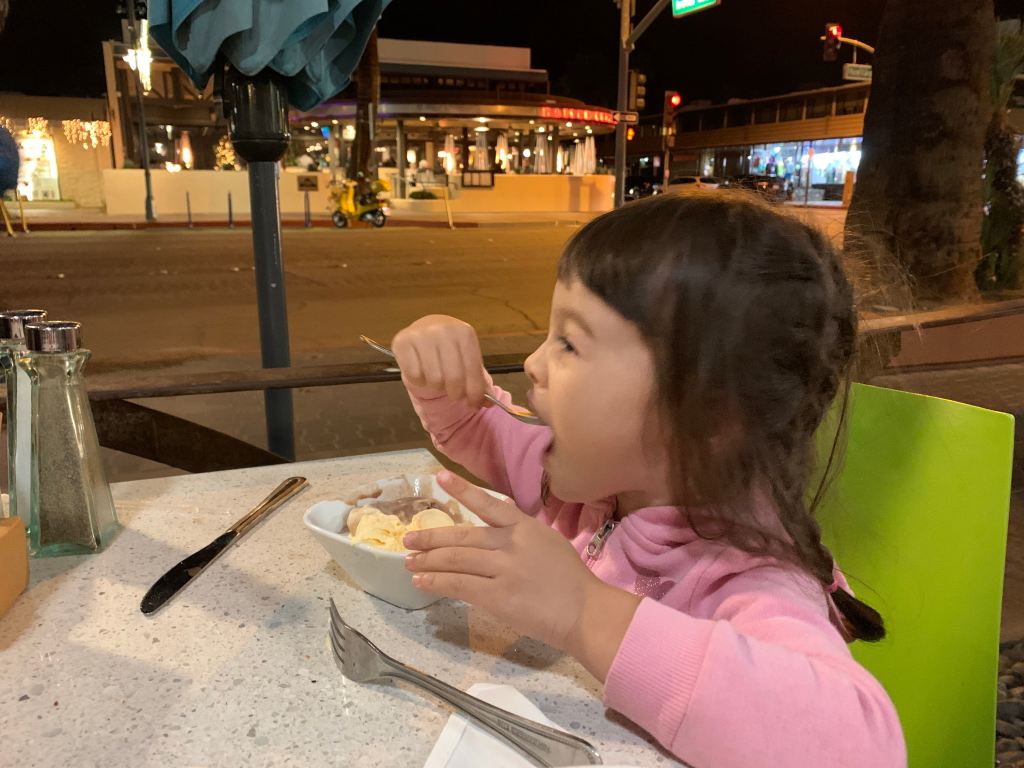 Happy New Year! Luna loves dips, not necessarily with chips or crackers. Sometimes, for example, she will eat straight guacamole, without dips. Or pico de gallo. Or salsa. This week for New Year’s Eve we went to Palm Springs for a little getaway so mom and dad could hike, and Luna had her dad’s favorite queso, the skillet queso from Chili’s, for the first time.