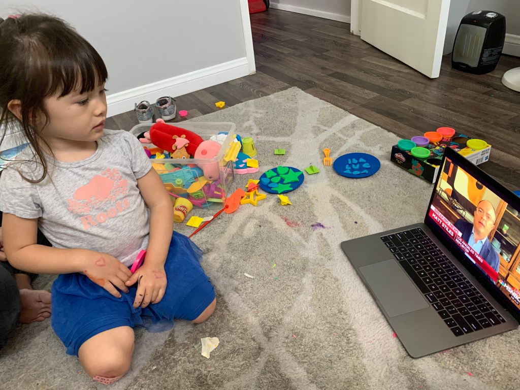 Watching Dad on the News Image • March 22, 2020 • Elise Luna pauses from her play doh to watch her dad on MSNBC. Hey I know that guy! Share this: Click to share on X (Opens in new window) X Click to share on Facebook (Opens in new window) Facebook Like Loading... Related