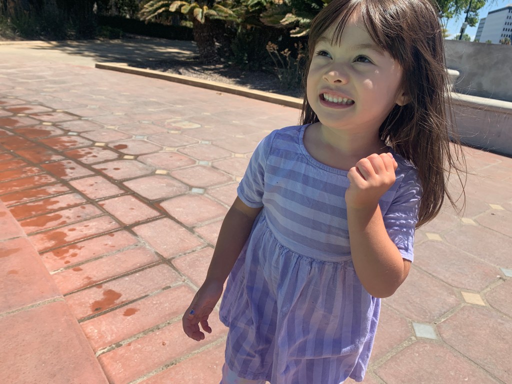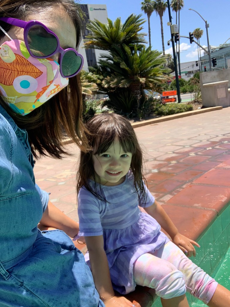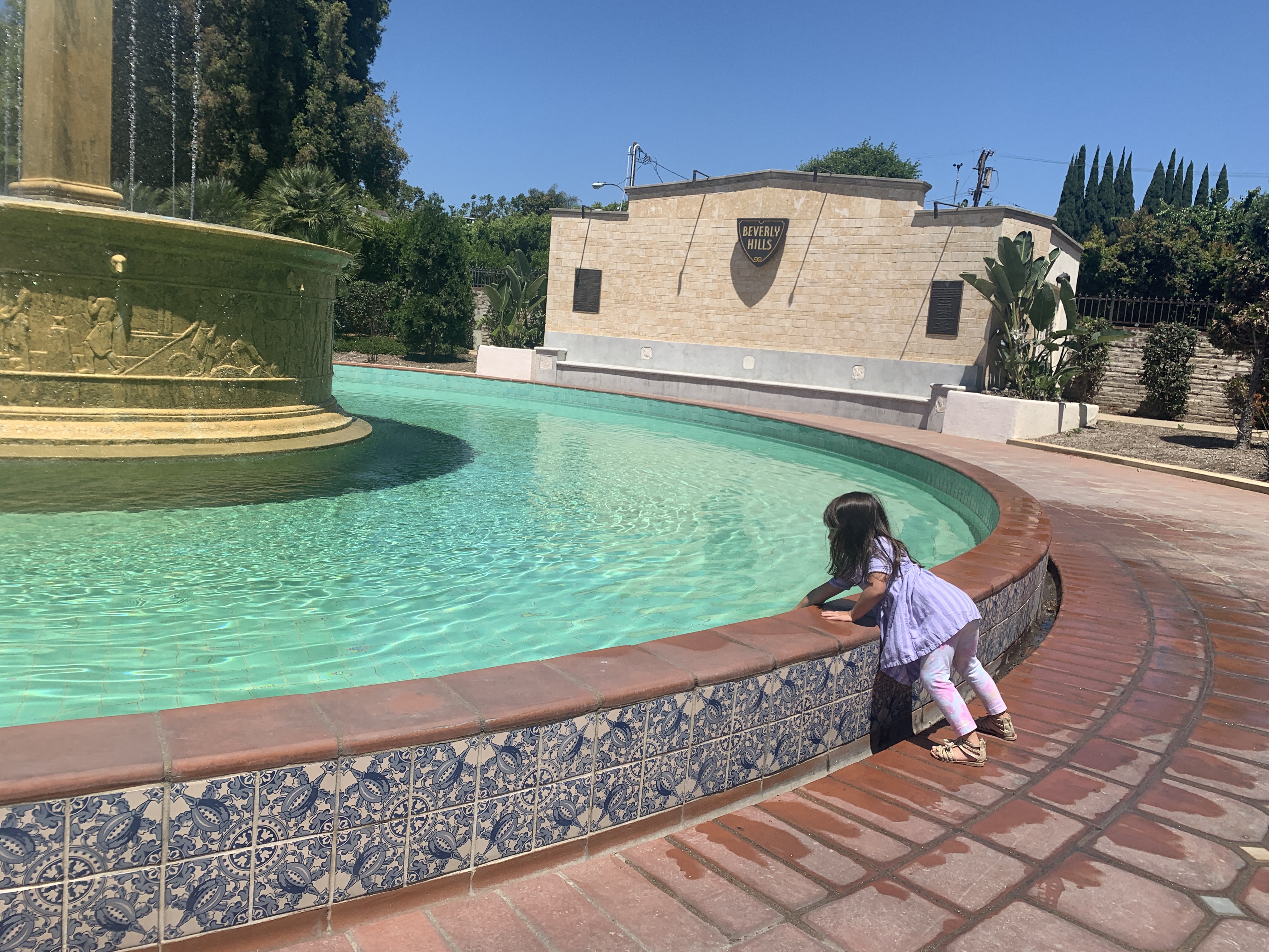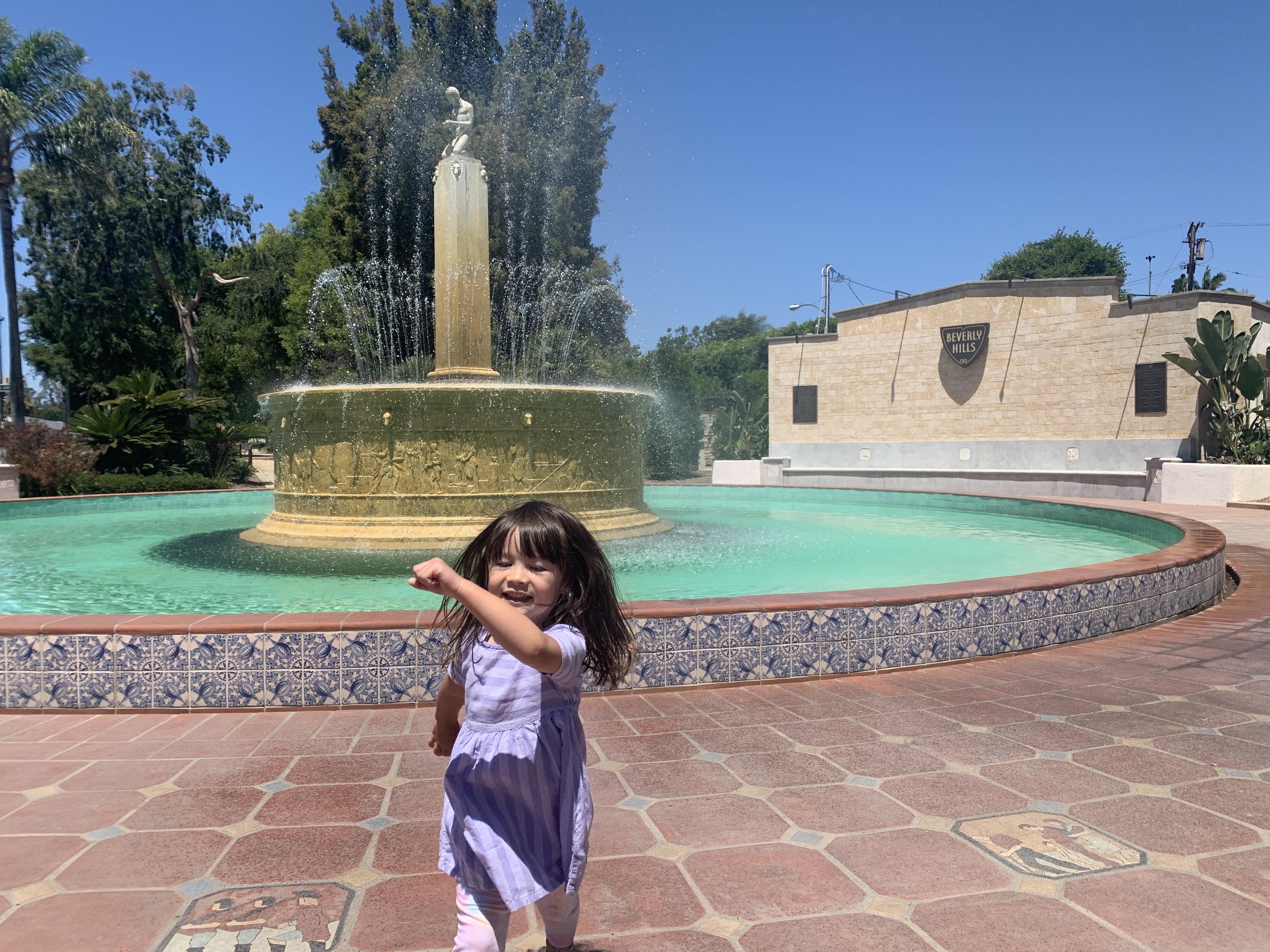 We visited the fountain and running trail in iconic Beverly Hills and Luna was nearly impossible to tear away from the fountain. Built in 1930, it was one of the first fountains of its kind. Luna splashed in there and felt the mist on a hot Sunday. So much free fun.