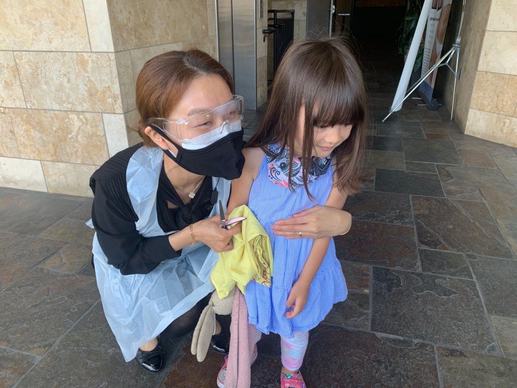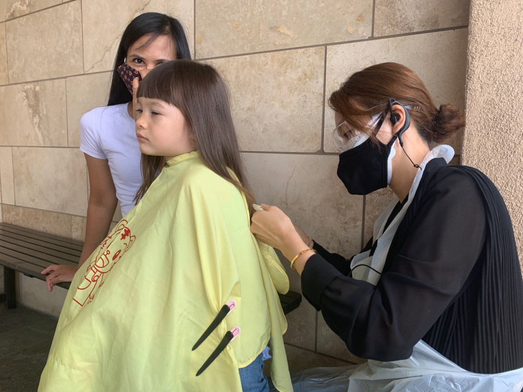 Luna was pretty shy about getting out and about again after months in quarantine. She was excited to go and get her bangs cut at her usual place, which just opened again last week. But when she got there she was too nervous to go inside and get a haircut with a mask on. So Kate was kind enough to come outside and give her a special cut outside the salon. Luna was so happy and gave her a big hug after.