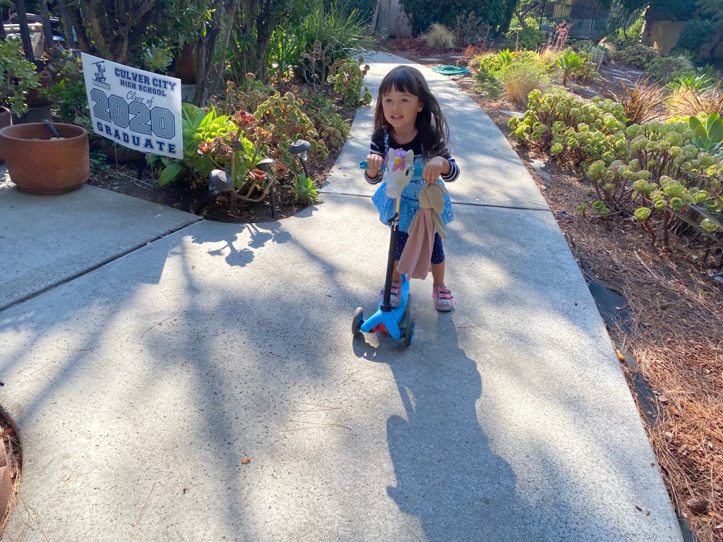 Hanging out and staying in our new home I’m Culver City. Luna enjoys the stairs, scootering around the neighborhood as the “leader,” and her new bed.