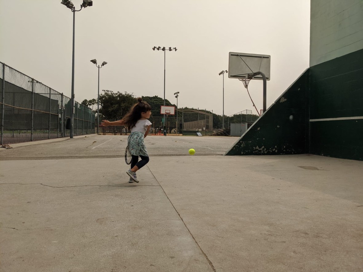 We are under sepia-toned, soupy whitish grey skies from the wildfires burning up and down the West coast. We shouldn’t even be outside for long but Luna wanted to get out for some sports. The rest of the girls stayed in.