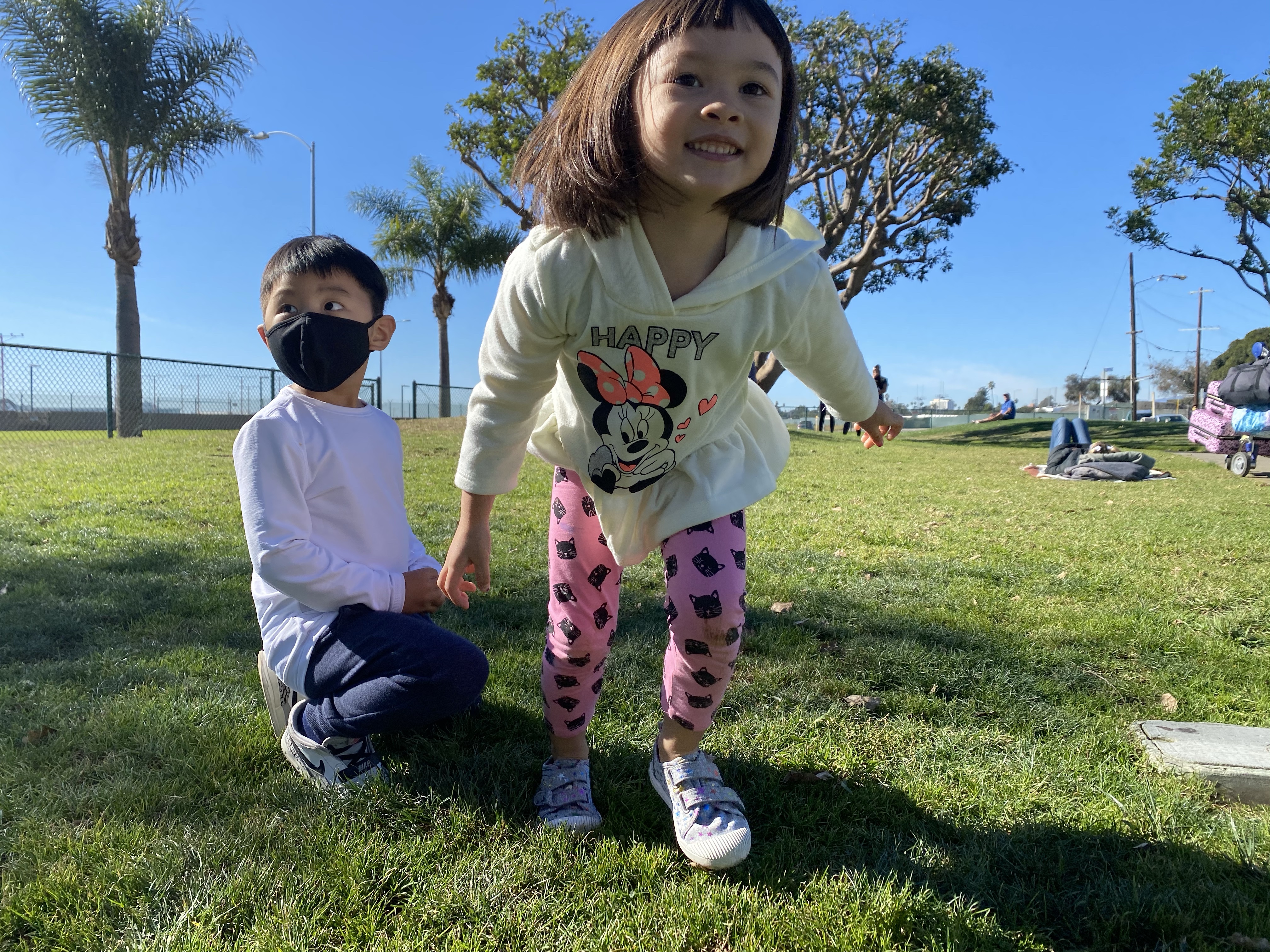 Cousin Ethan has to celebrate his fourth birthday on an international flight, as his family moves to Hong Kong for my brother Roger’s new job. But because of some bureaucracy, they were stuck here in LA on an extra long unplanned layover. That meant we got to surprise Ethan with a picnic birthday celebration and Luna and Ethan got back to their old antics. They are as thick as thieves, and have always enjoyed a natural friendship and play really well together.