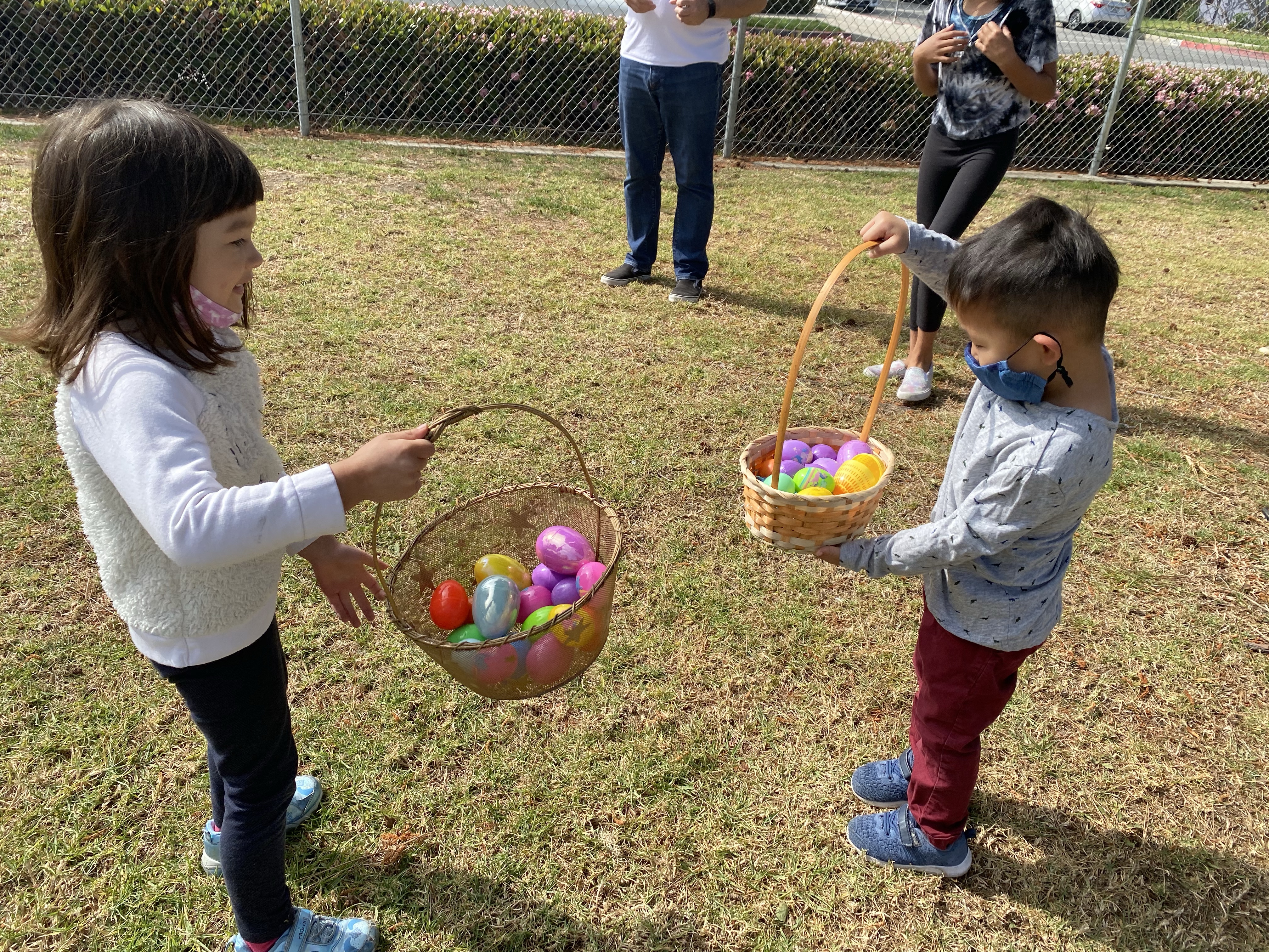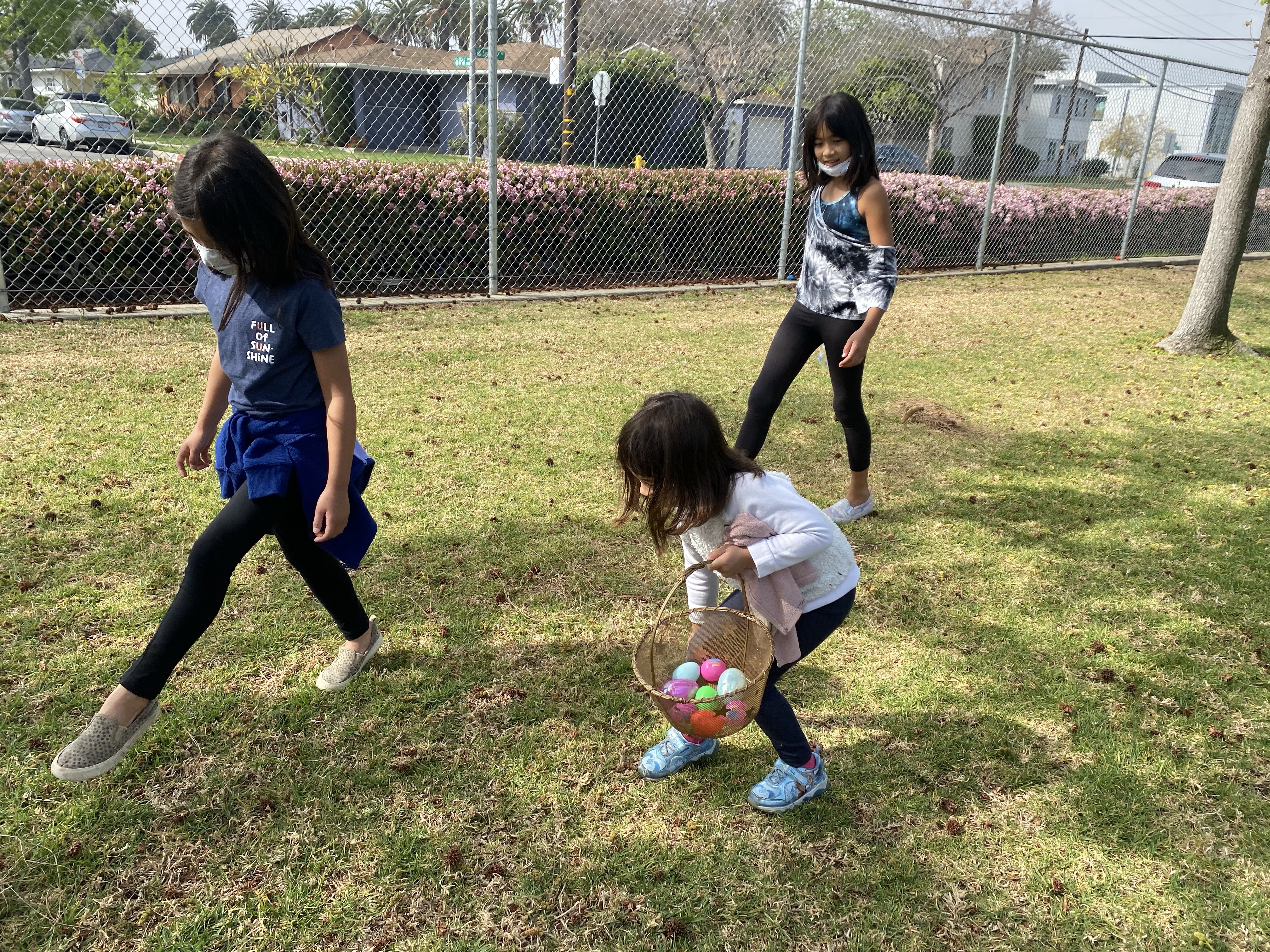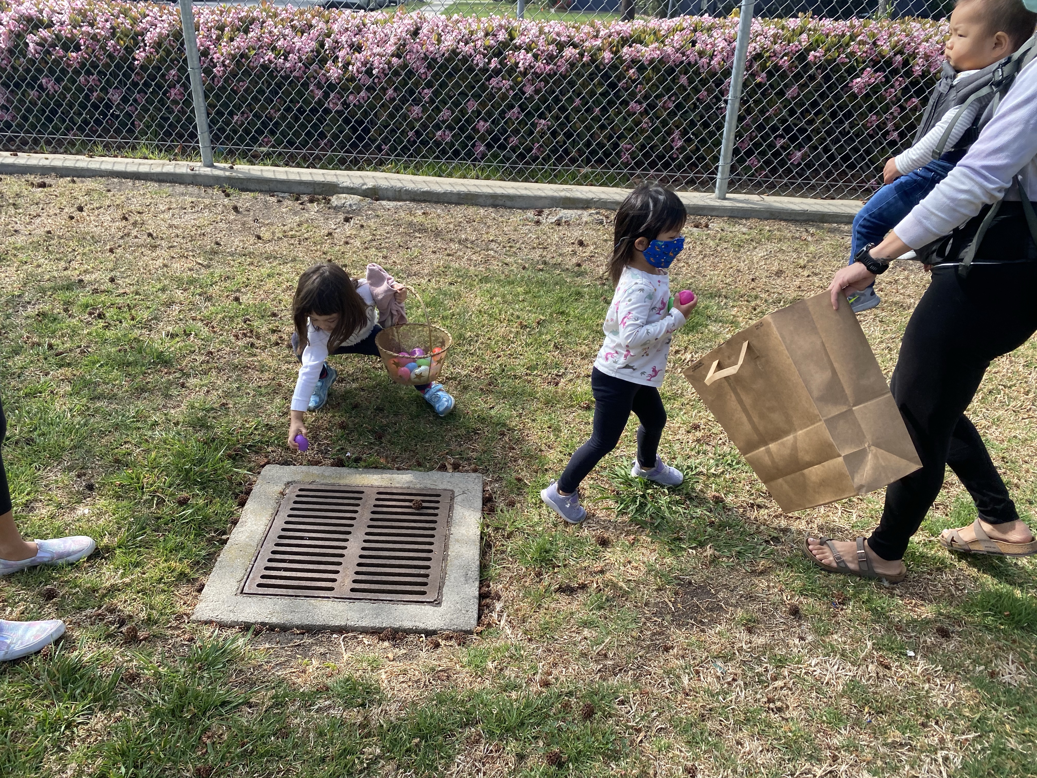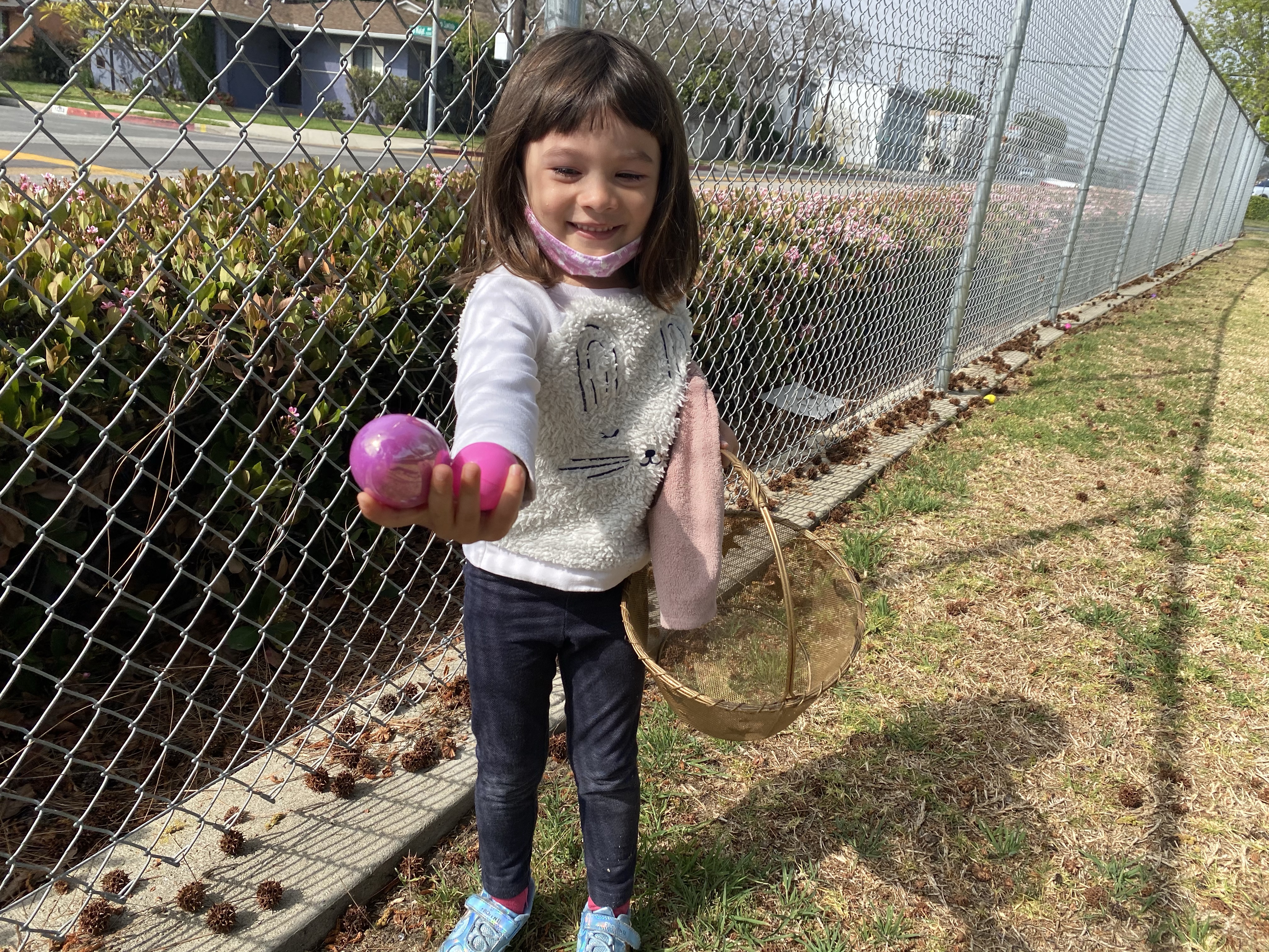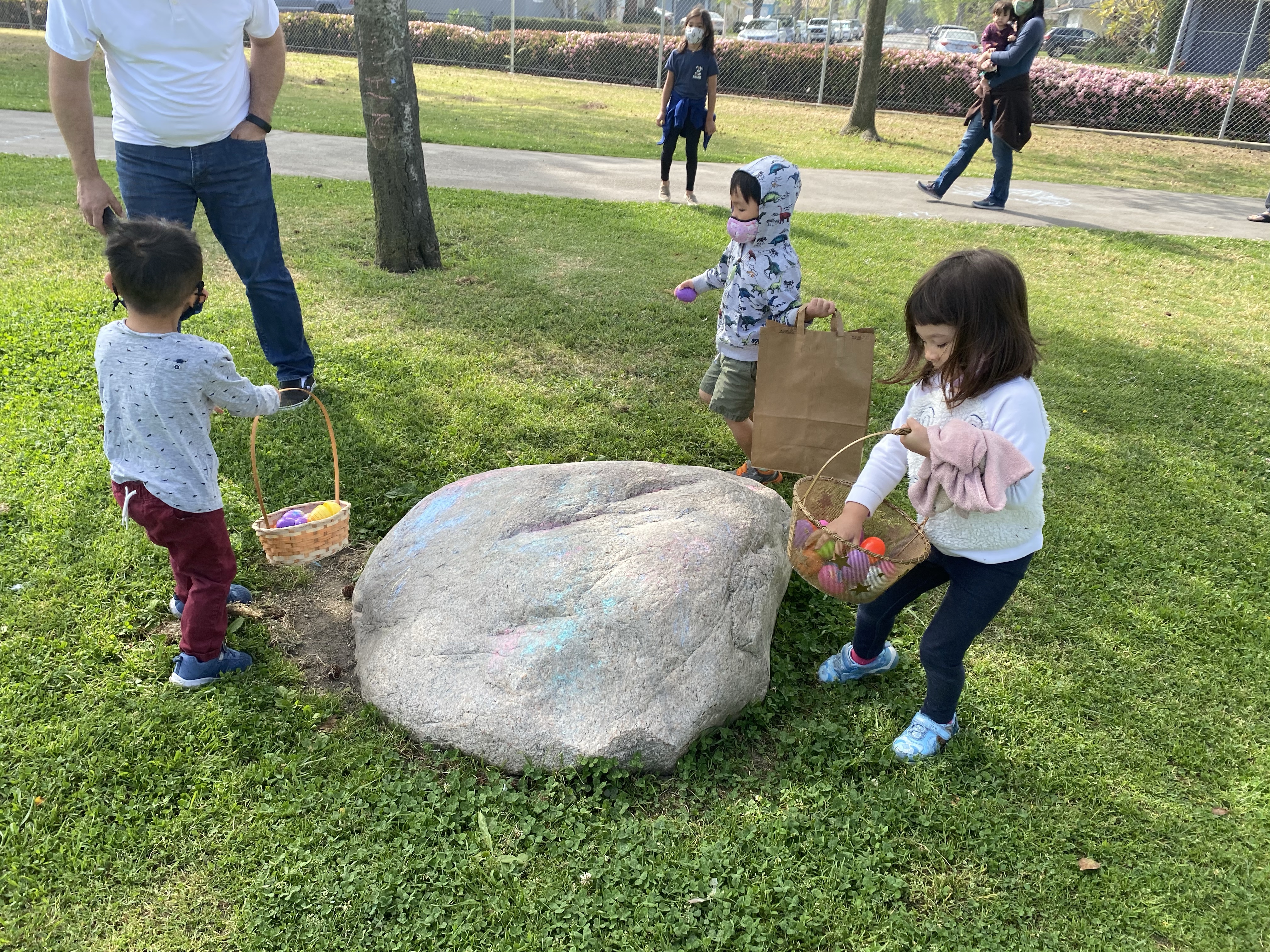 The fearsome preschoolers almost came to blows over eggs they rushed to find around the soccer fields at Blanco Park. Luna’s big sisters helped hide them and guide her to eggs…