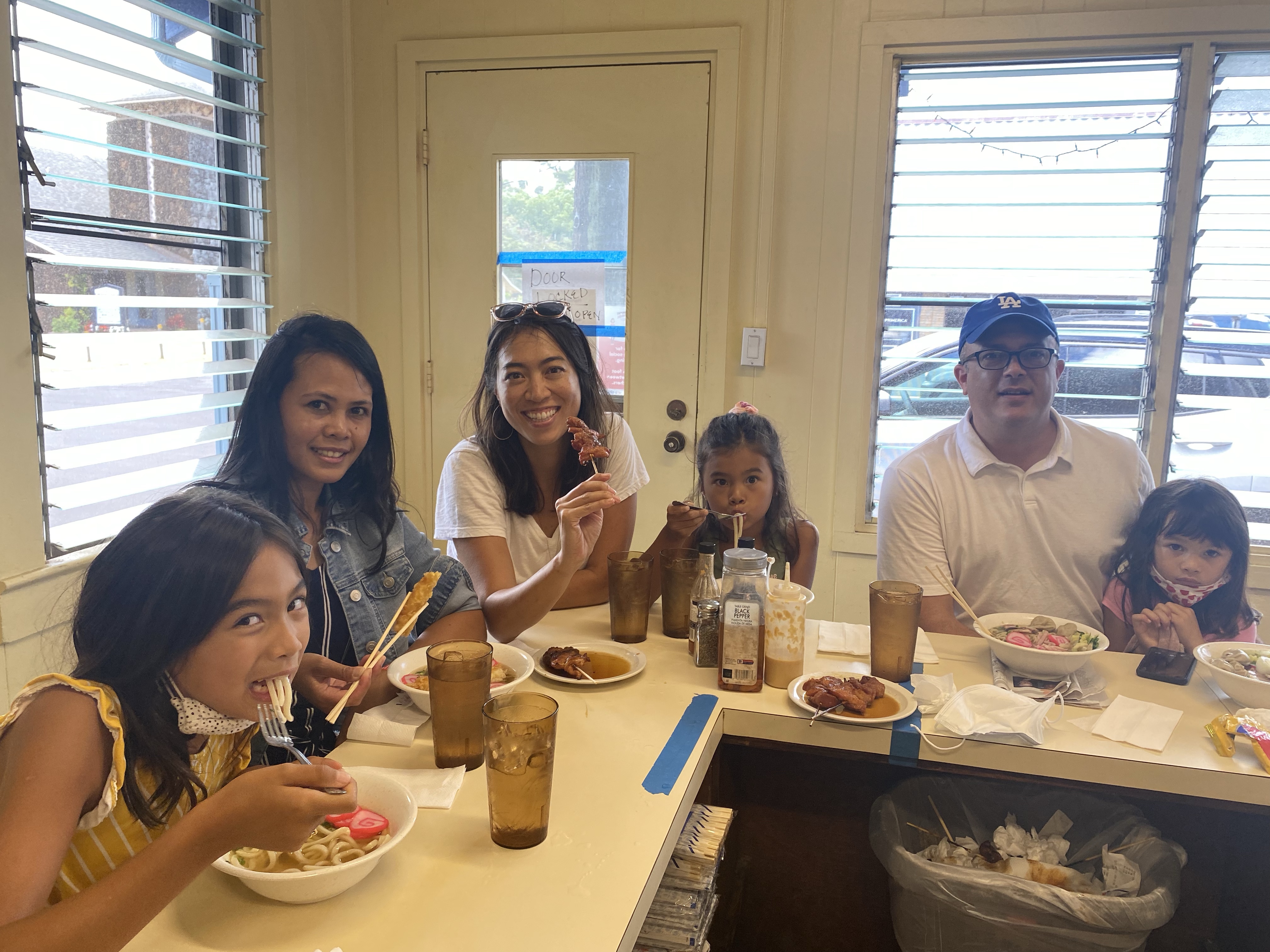 Arrived and went straight for saimin noodles (all the girls loved) and chicken bbq skewers (only Isa was a huge fan). Squeezed in shaved ice, too, before checking into our rental house.