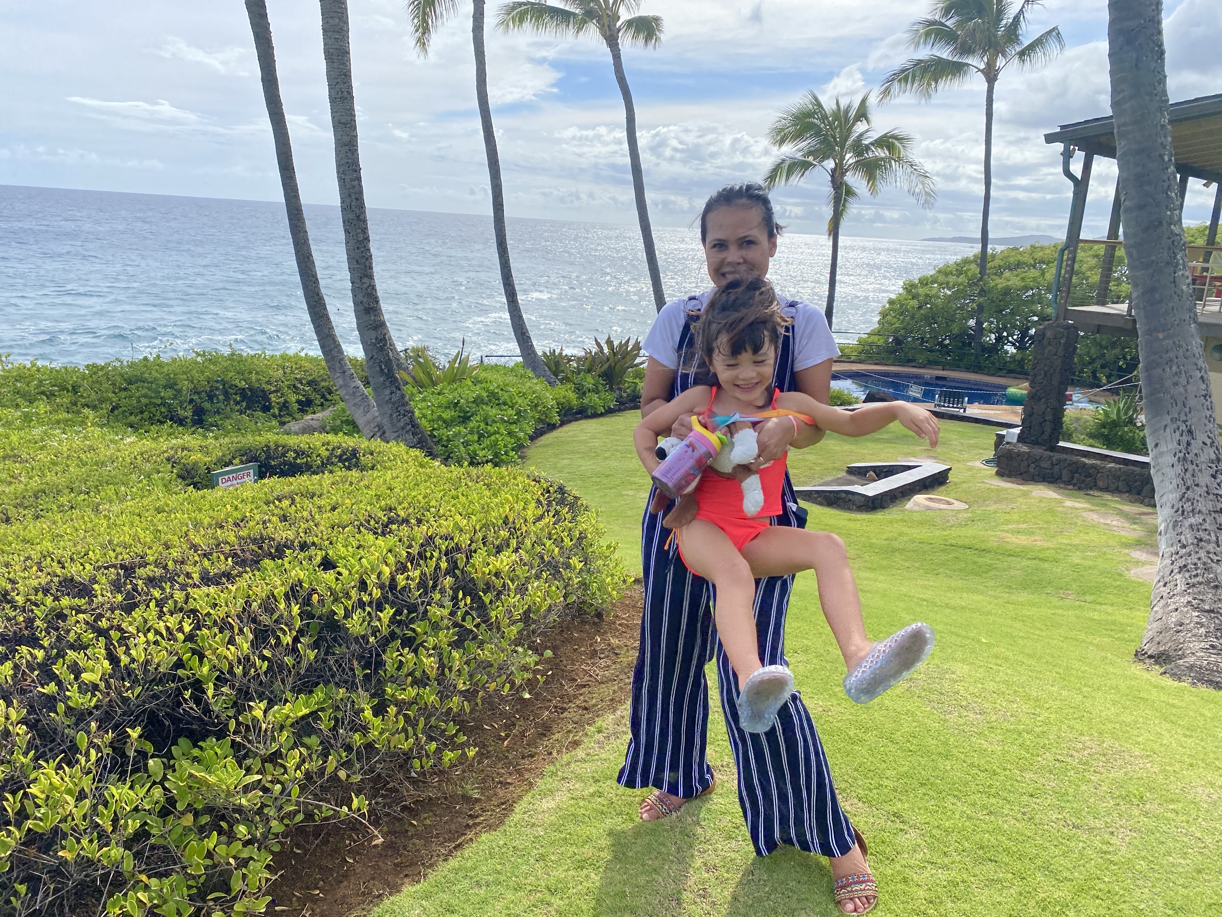 First airplane trip in 18 months and we returned to the place Luna last flew from — Hawaii. We are on Kauai for a few days before her sisters start first and third grades!