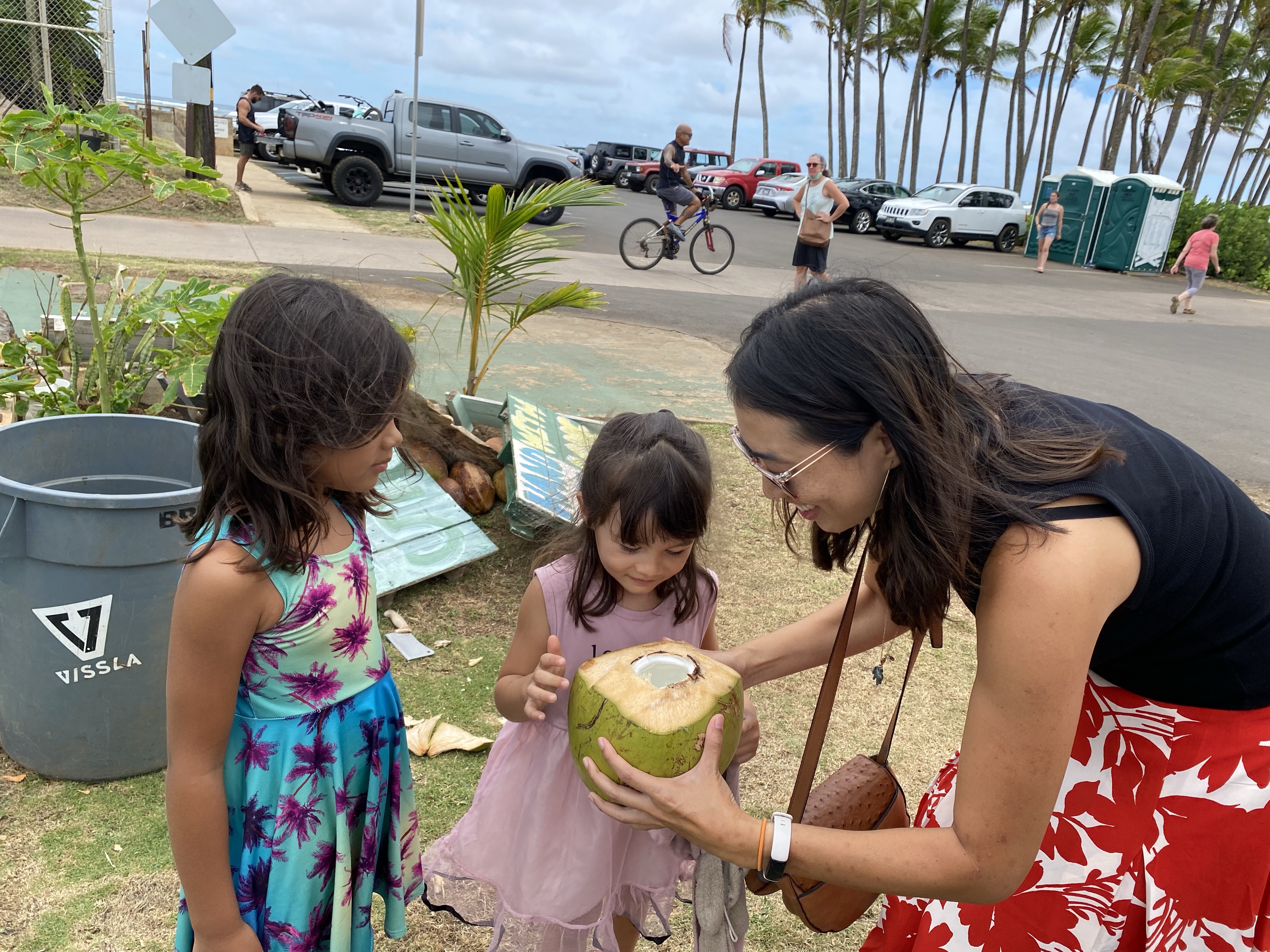 Fresh juice from a coconut, shave ice every day, turtles at the beach, snorkeling with dad, jumping in the pool with the sisters… it was a lovely vacation on Kauai.