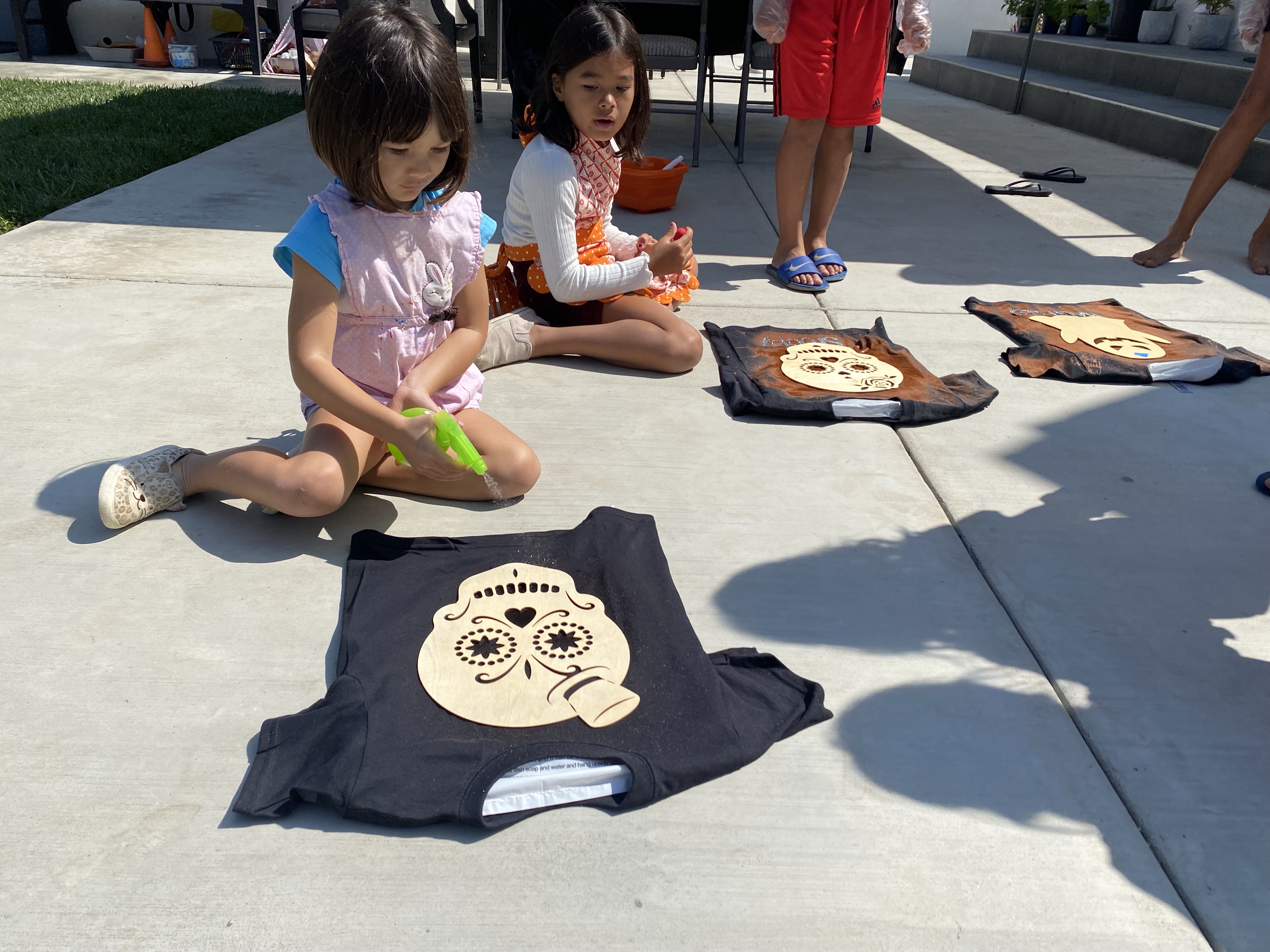 So much fun and bleach going on at Friend Emma’s house today, where the girls made cool reverse tie dye shirts for Halloween.
